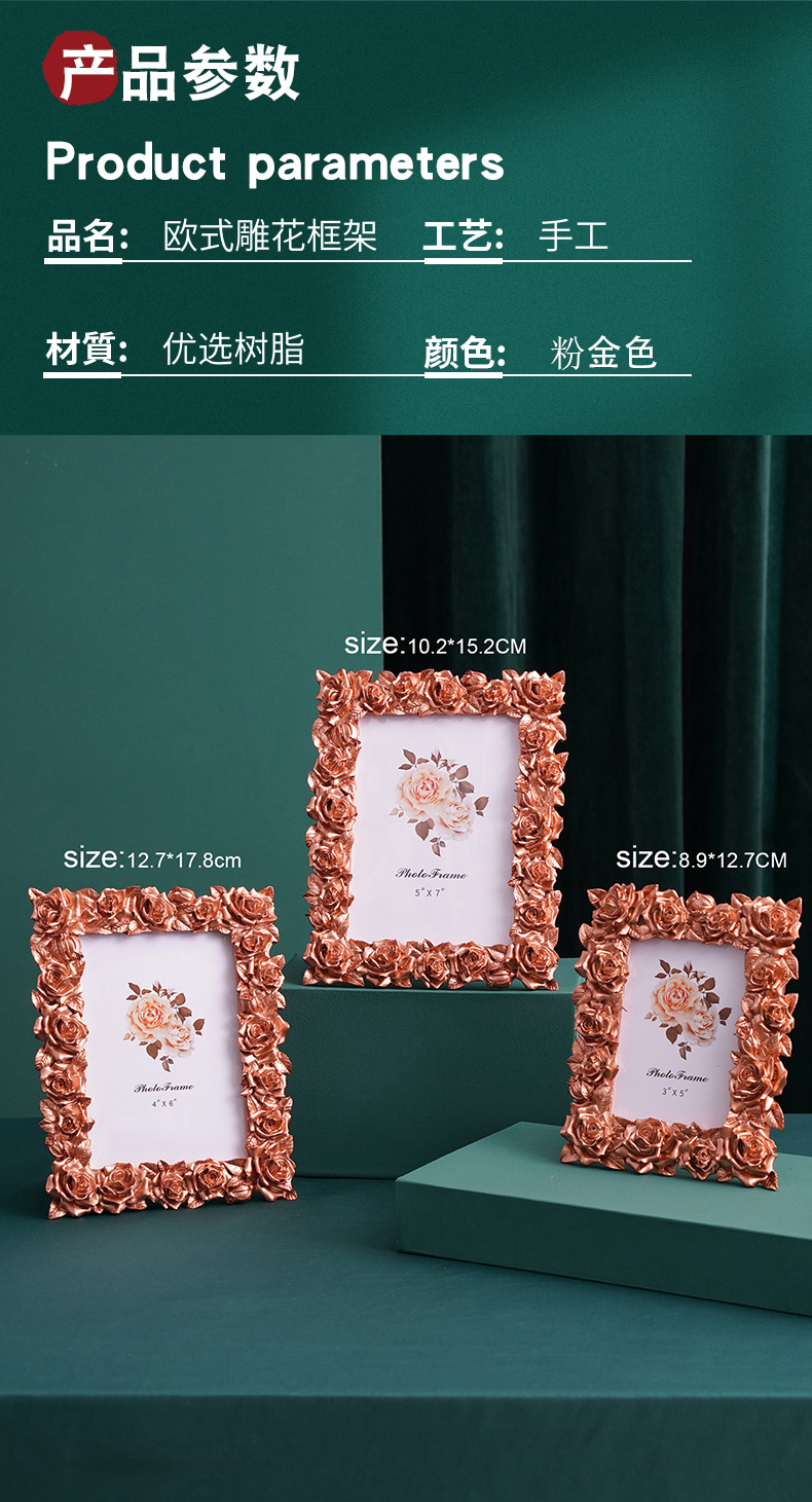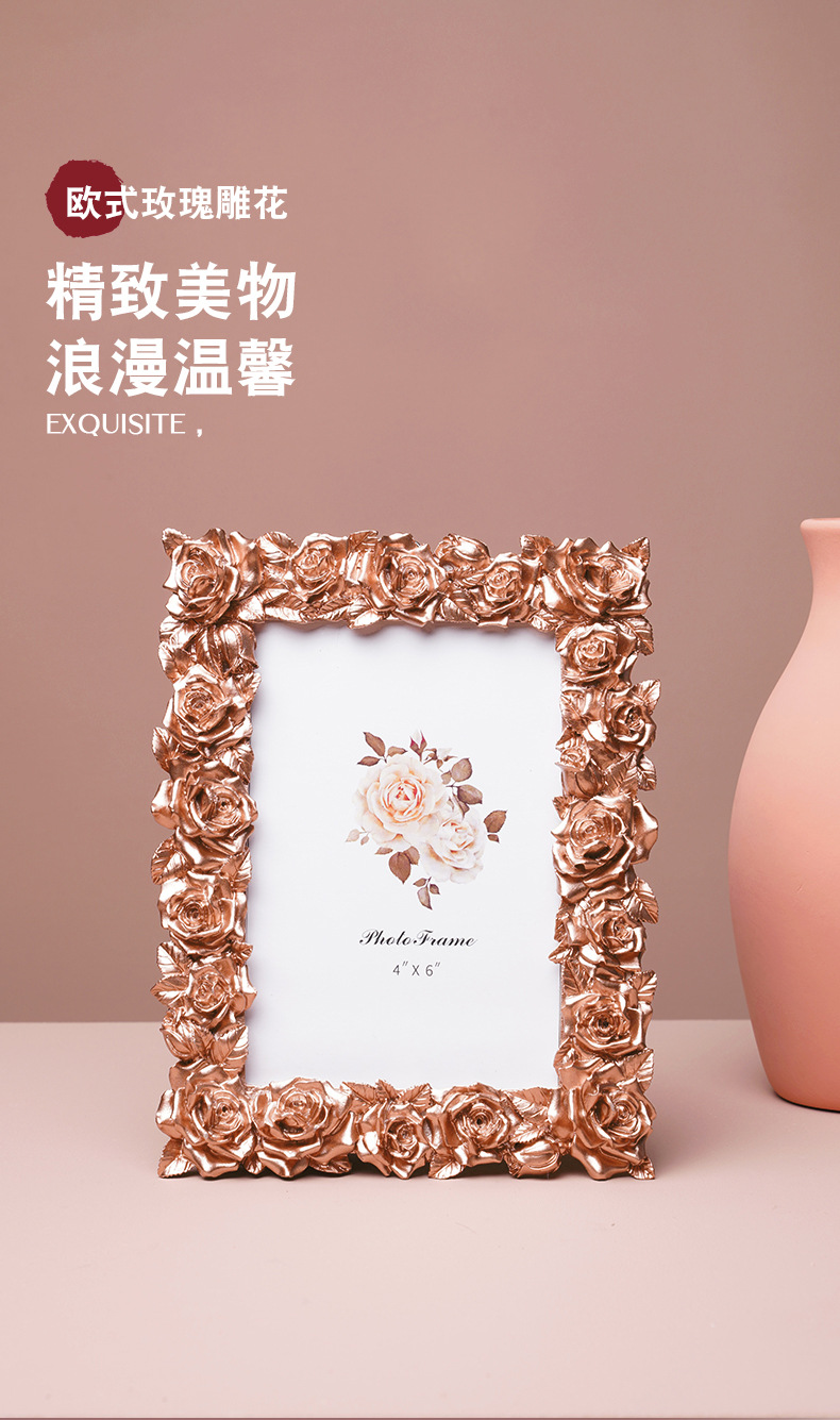 새로운 데스크탑 유럽 스타일의 작은 장식품 액자 복고풍 액자 테이블 장식 장미 꽃 현대 5 6 7inch 액자 장식품스토어 가기