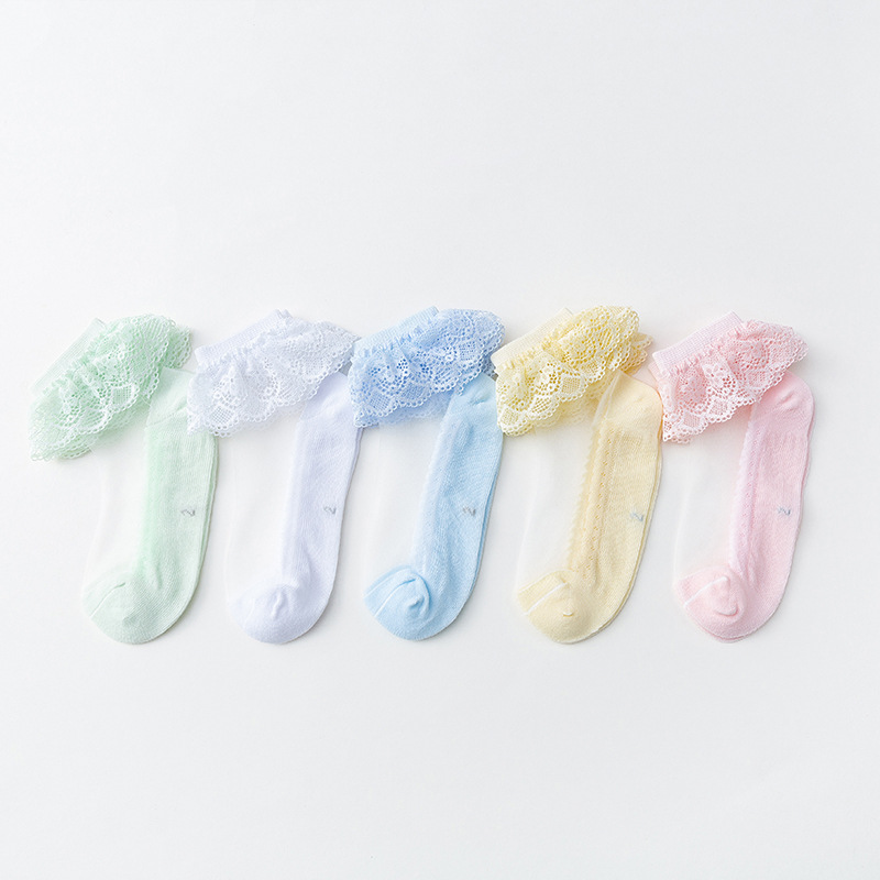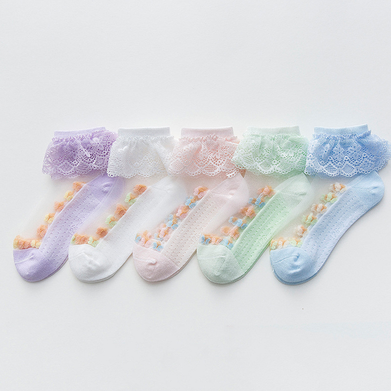 작은 토끼 소녀 양말 2022 새로운 여름 어린이 통기성 레이스 한국 공주 크리스탈 양말