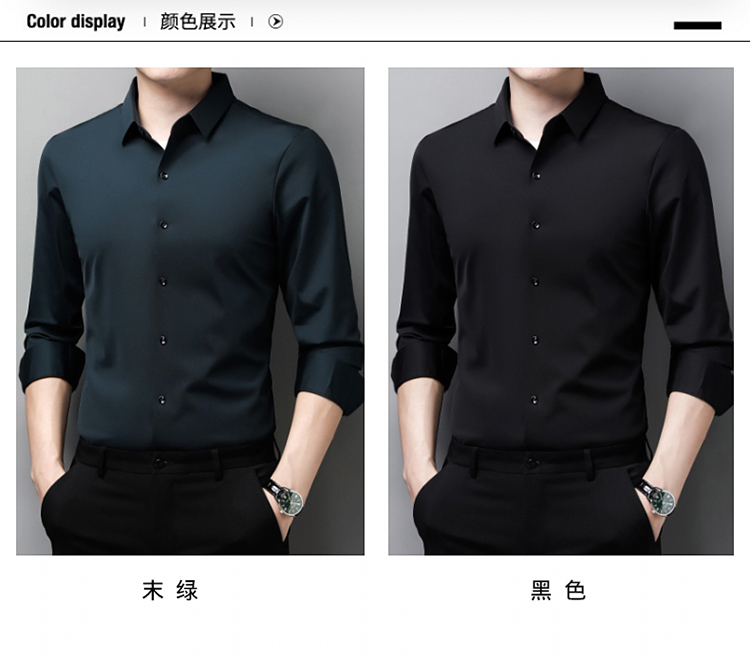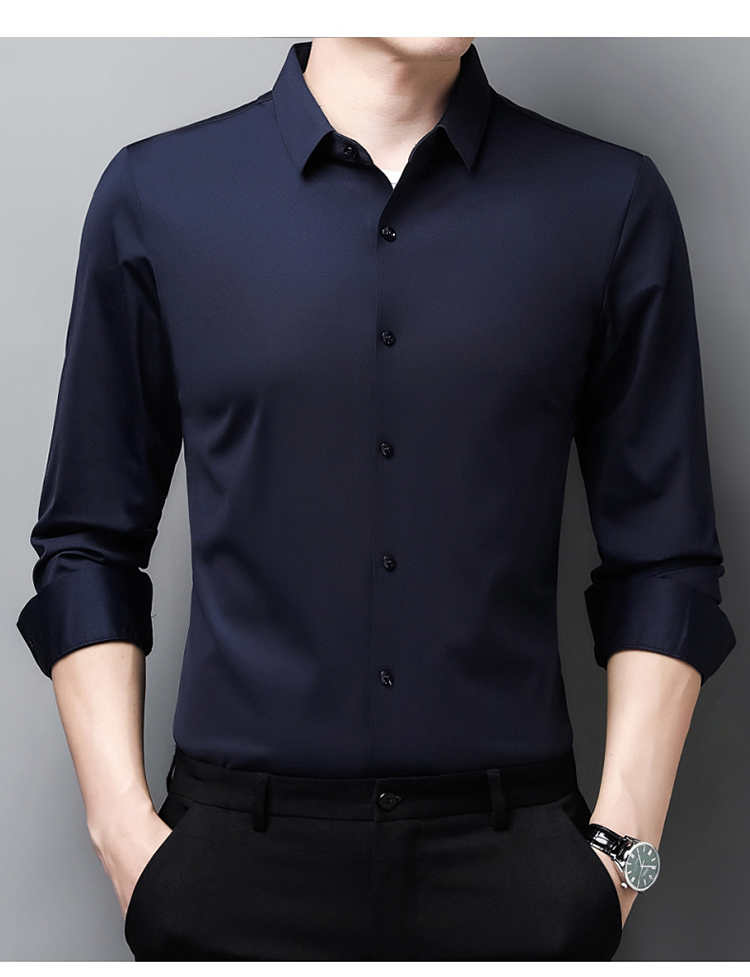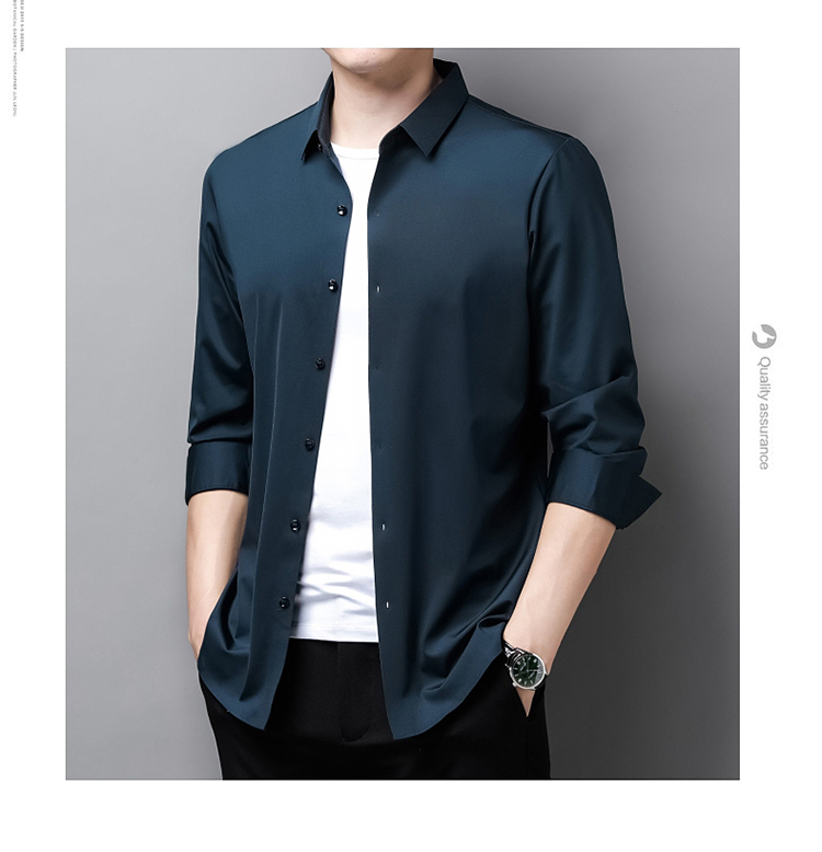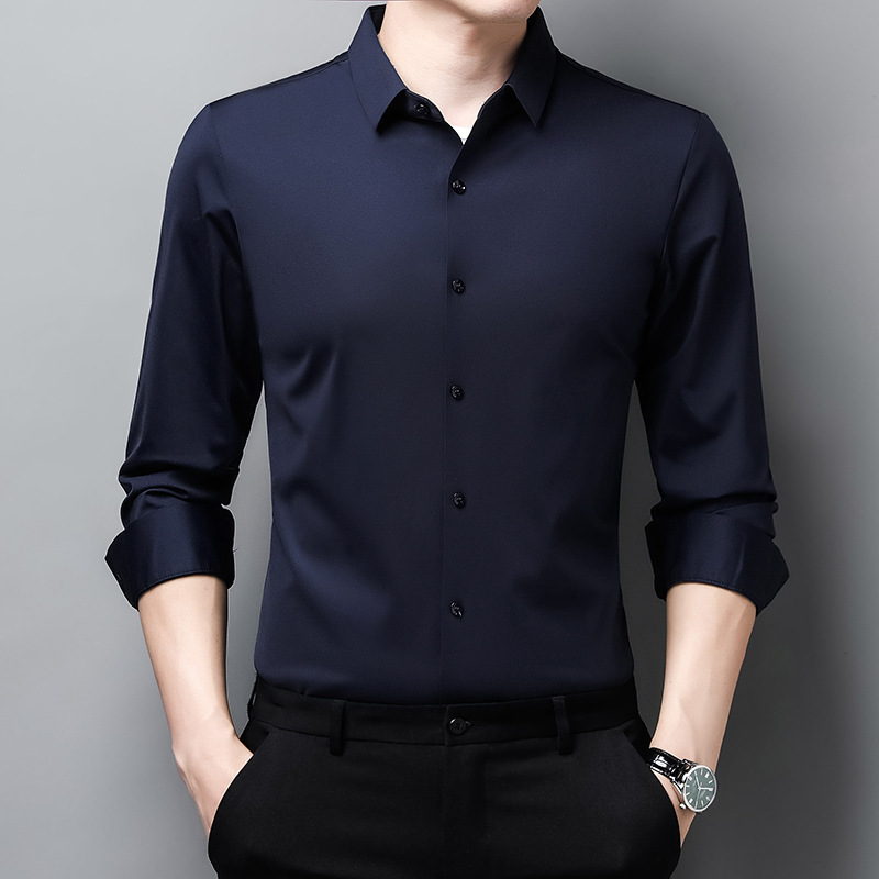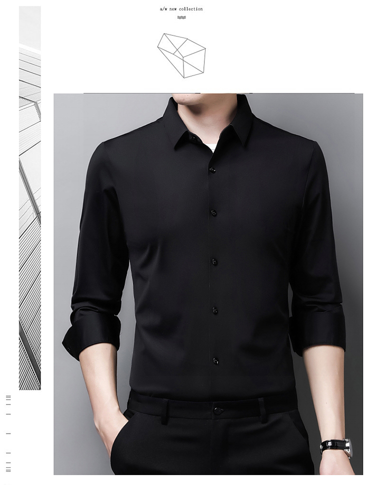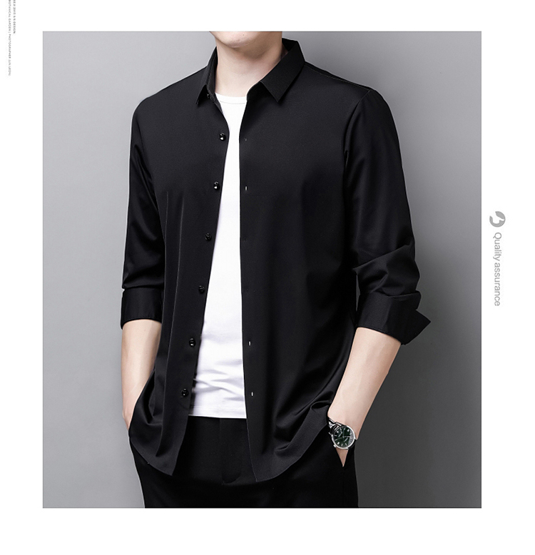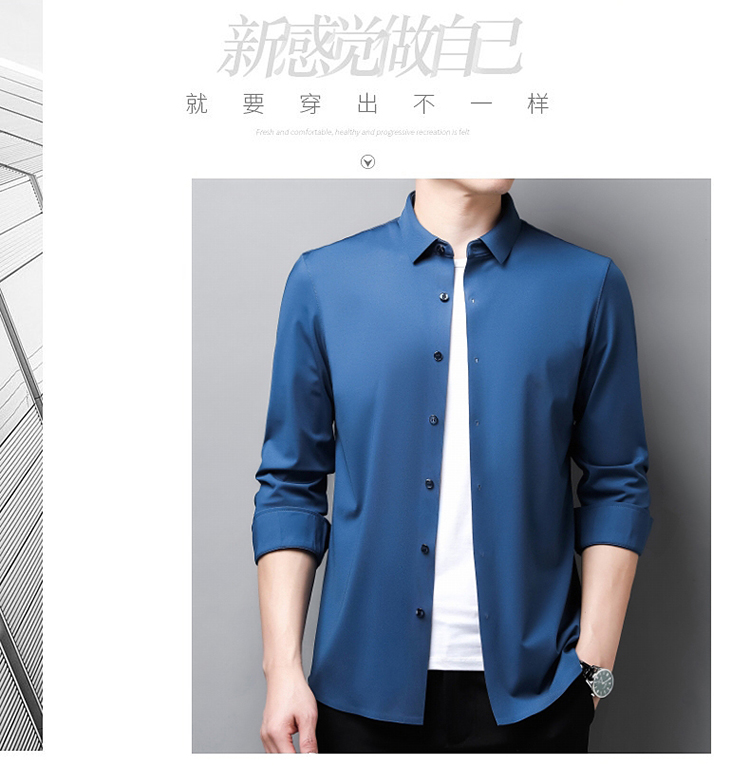 2023 봄 새 남자 단색 옷깃 셔츠 긴 소매 셔츠 비즈니스 캐주얼 긴 소매 인치 옷 도매 1808스토어 가기