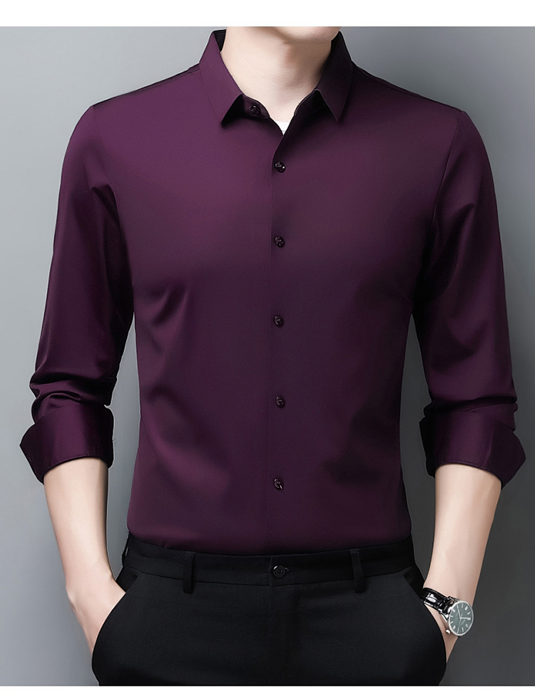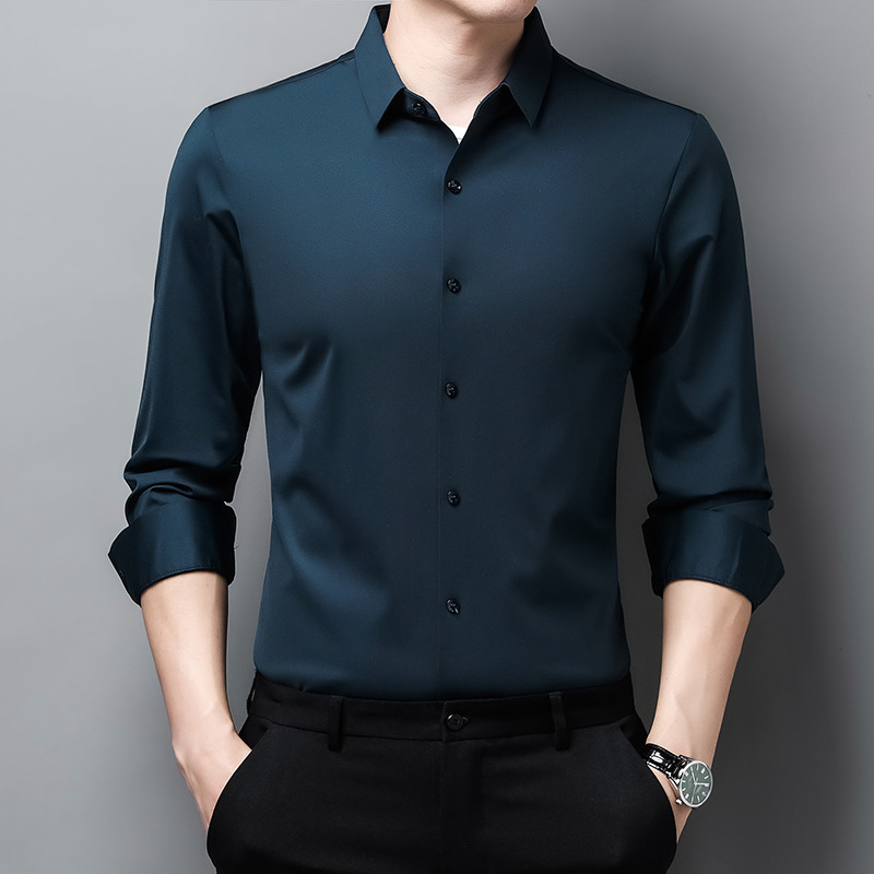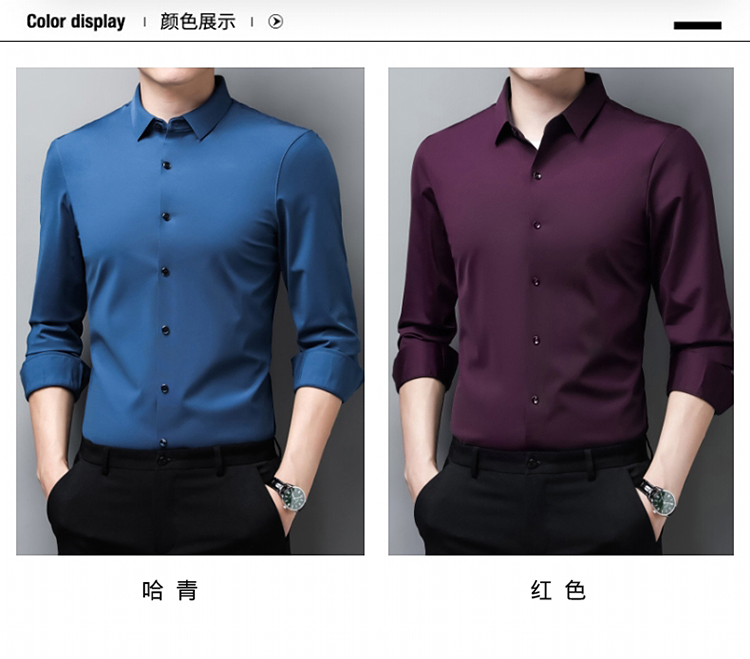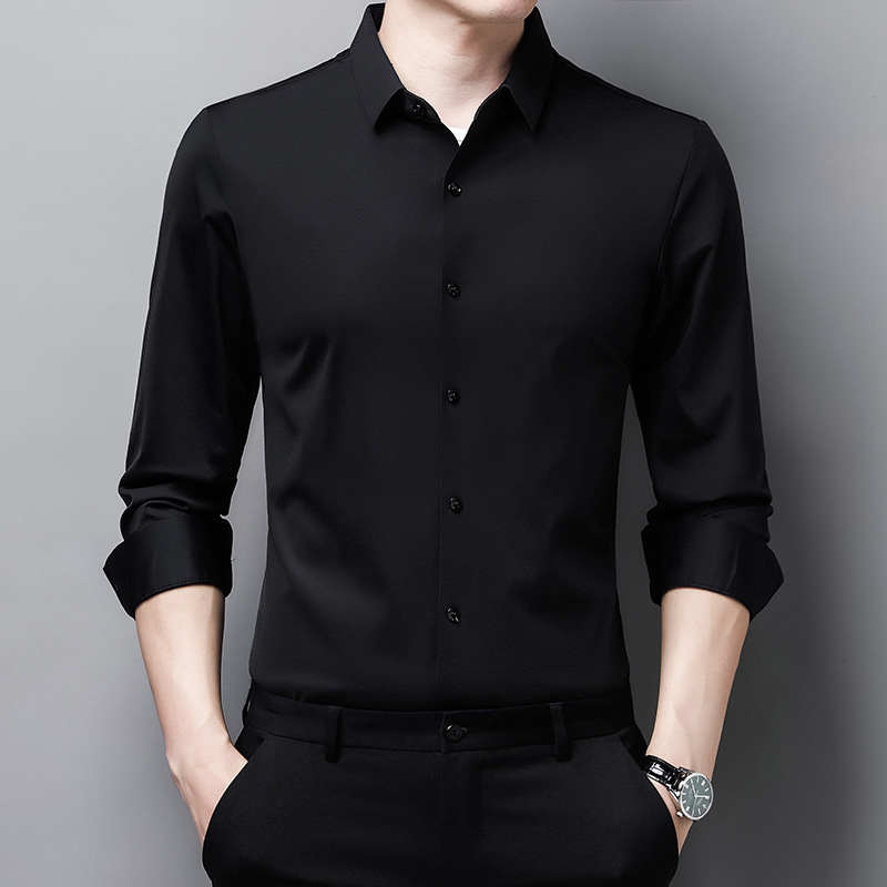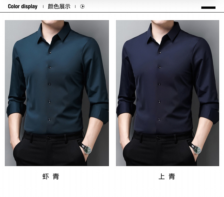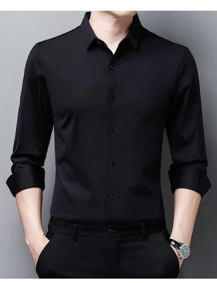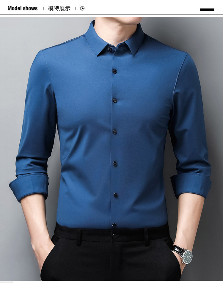 2023 봄 새 남자 단색 옷깃 셔츠 긴 소매 셔츠 비즈니스 캐주얼 긴 소매 인치 옷 도매 1808스토어 가기