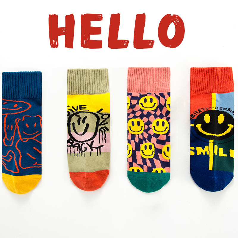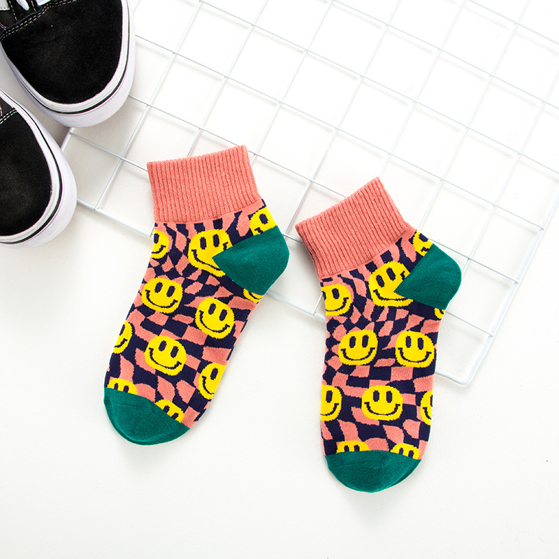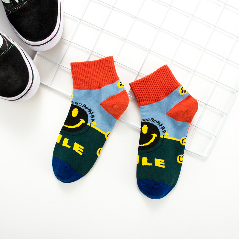 새로운 봄과 여름 만화 웃는 얼굴 조수 양말 그물 빨간 폭발 양말 INS 간단한 한국 일본 보트의 세대 양말스토어 가기