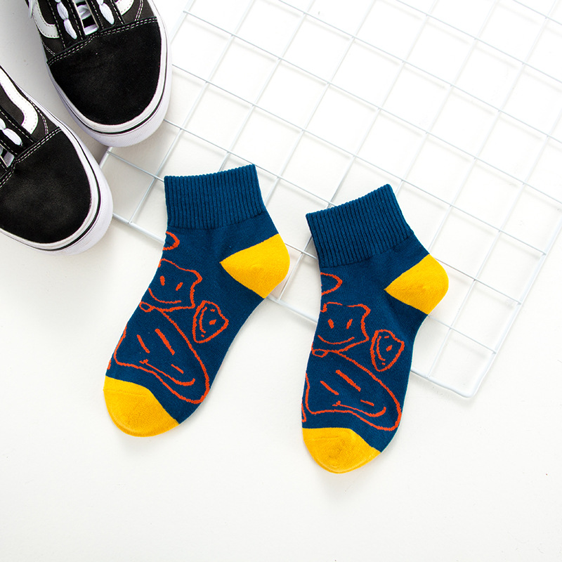 새로운 봄과 여름 만화 웃는 얼굴 조수 양말 그물 빨간 폭발 양말 INS 간단한 한국 일본 보트의 세대 양말