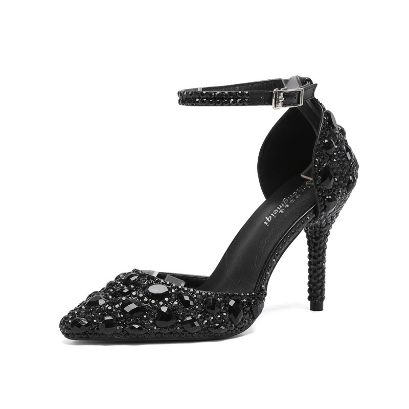 2025 여성용 신상 12색 얇은 굽 연회용 포인티드 토 로우컷 솔리드 컬러 웨딩 다이아몬드 하이힐, 드롭쉬핑 가능