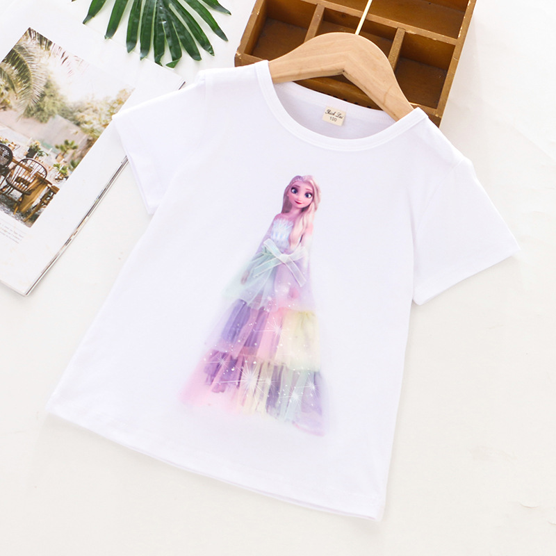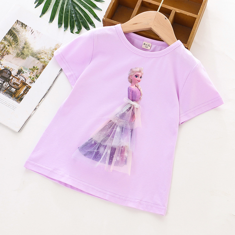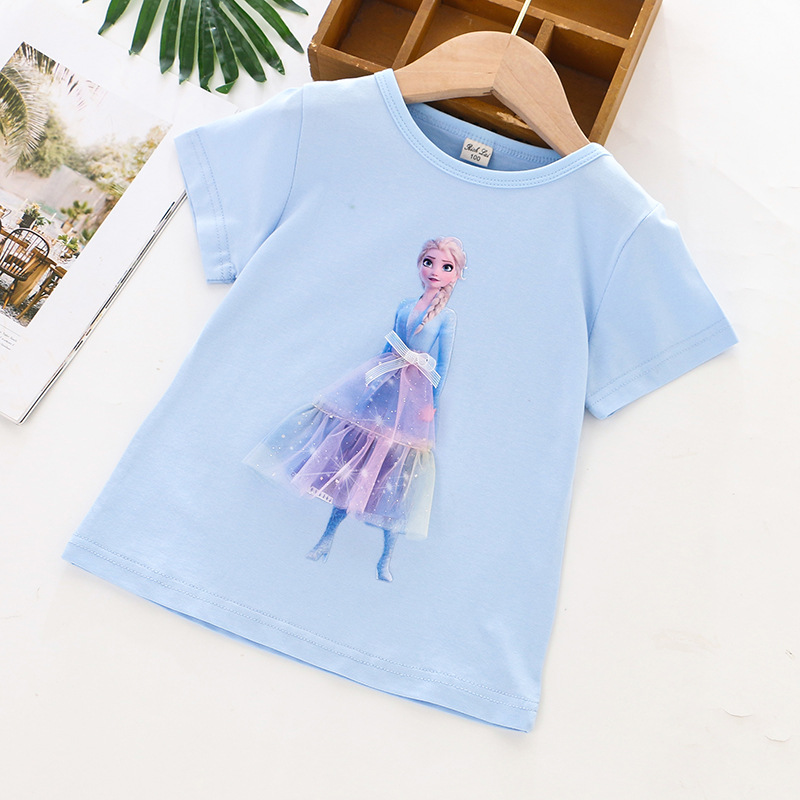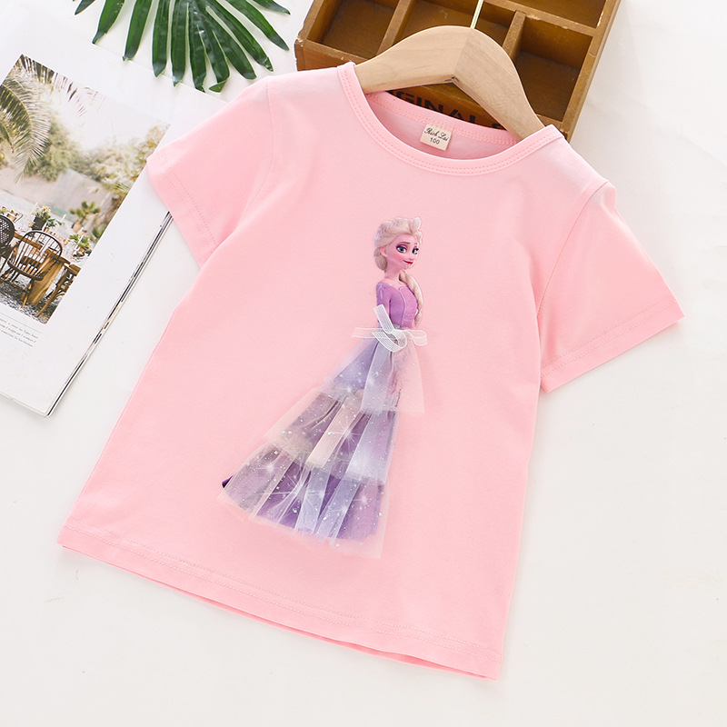 크로스 보더 ~ 2023 아동복 새로운 여름 여아 반소매 티셔츠 베이스 셔츠 입체 프린세스 그라디언트 메쉬 코튼 자켓 조수스토어 가기