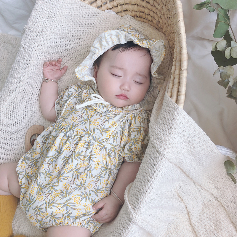 Ins23 여름 한국식 신생아 꽃 점프 수트 반팔 아기 가방 방귀 토끼 등산복 모자스토어 가기