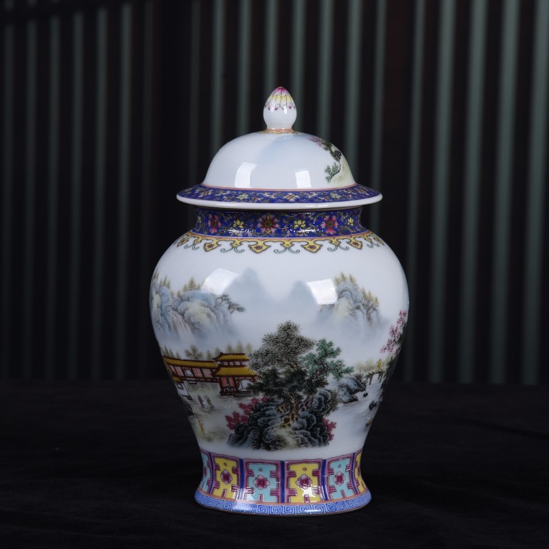 山水将军罐高;23cm 最大直径;14cm 口径;9c