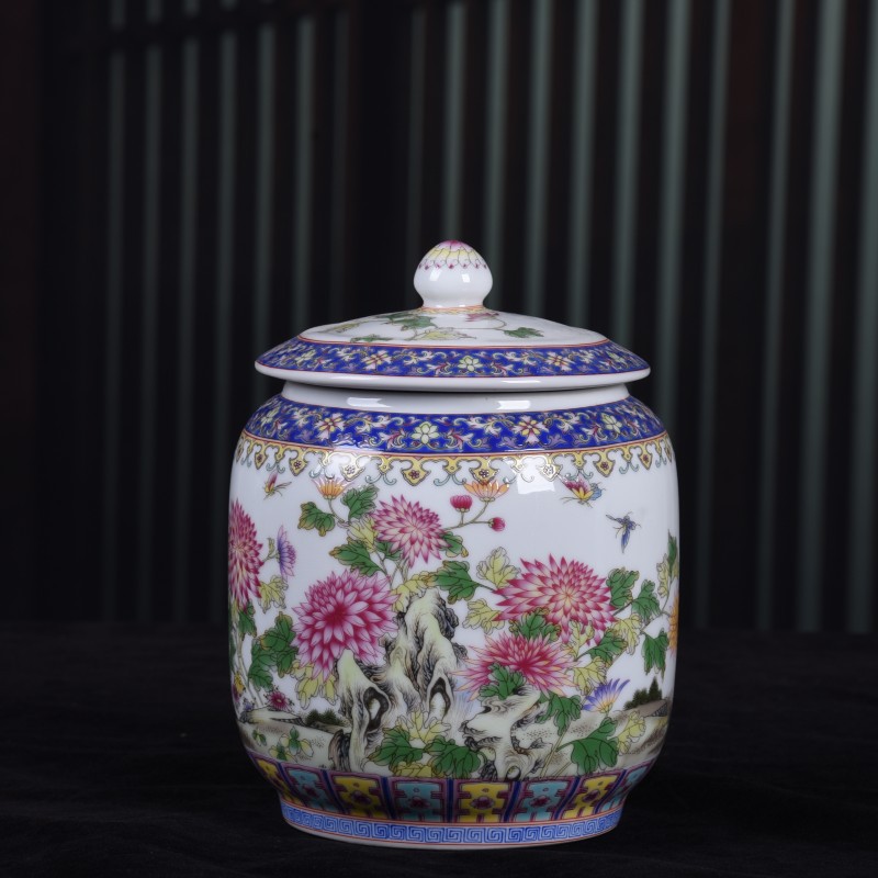 Jingdezhen 세라믹 차 냄비 빈티지 중국 가정 보관 에나멜 색상 밀봉 냄비 대형 차 Pu'er 차 냄비스토어 가기