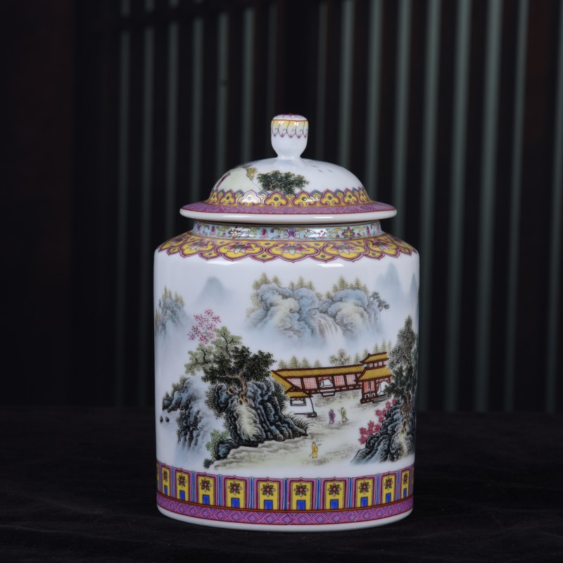 Jingdezhen 세라믹 차 냄비 빈티지 중국 가정 보관 에나멜 색상 밀봉 냄비 대형 차 Pu'er 차 냄비