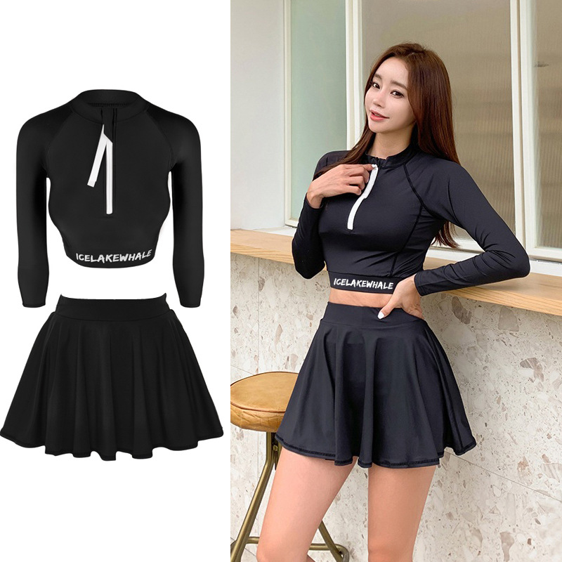 온천 수영복 여성 슬리밍 배꼽 취재 보수적 인 학생 스플릿 긴 소매 태양 보호 수영복 2020 새로운 수영복스토어 가기