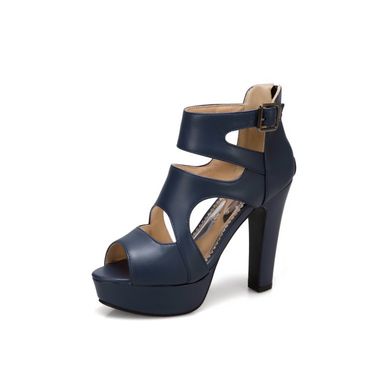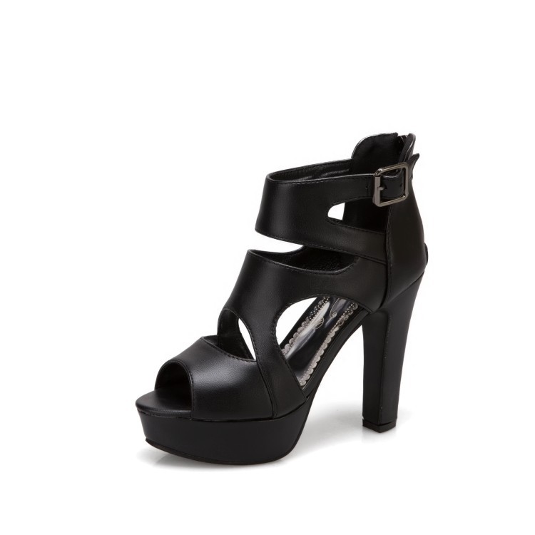 2021 여름 새 샌들 다시 지퍼 속이 빈 발가락 신발 청키 발 뒤꿈치 여성 신발 40-50 대형 신발 도매