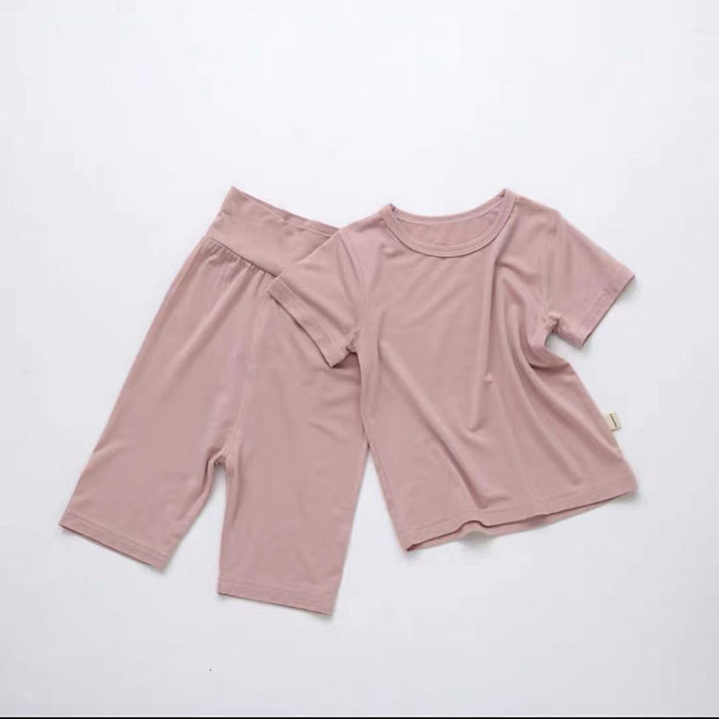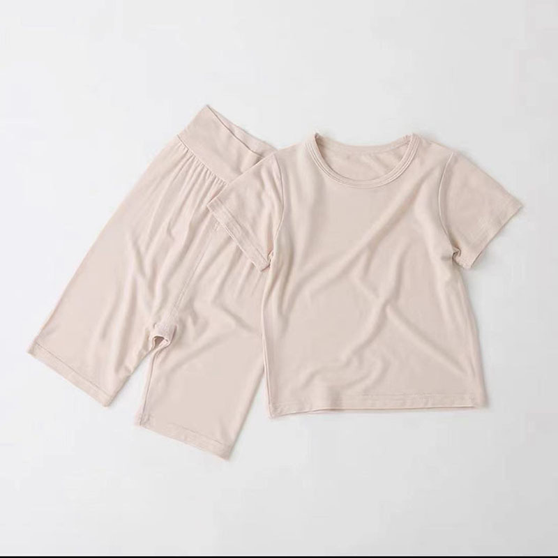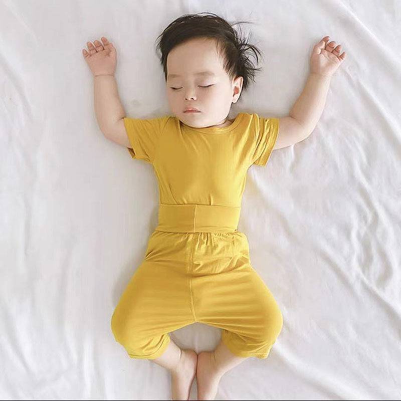 아기의 세트 여름 얇은 에어컨 의류 하이 웨이스트 배 보호 반팔 바지 잠옷 모달 남성 아기의 여름 의류 여성