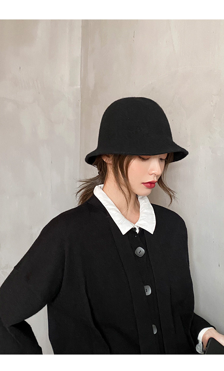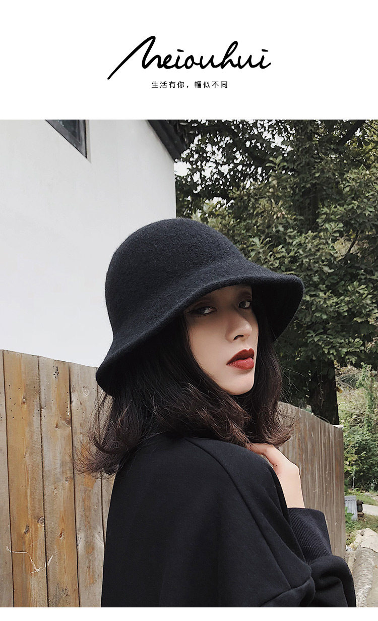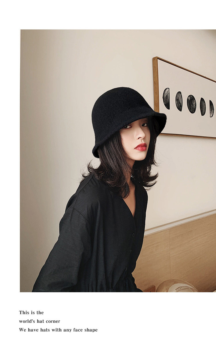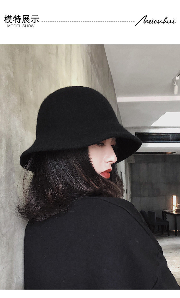 사계절 검은 양모 어부 모자 여성의 봄과 가을 한국 스타일 유행 모든 경기 이른 봄을위한 니트 인터넷 연예인 분지 모자스토어 가기