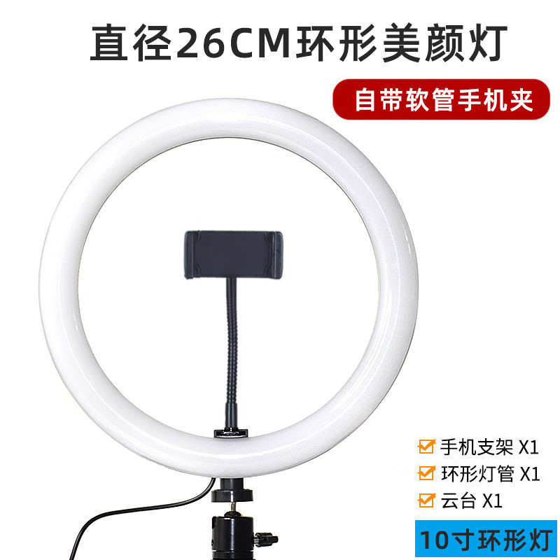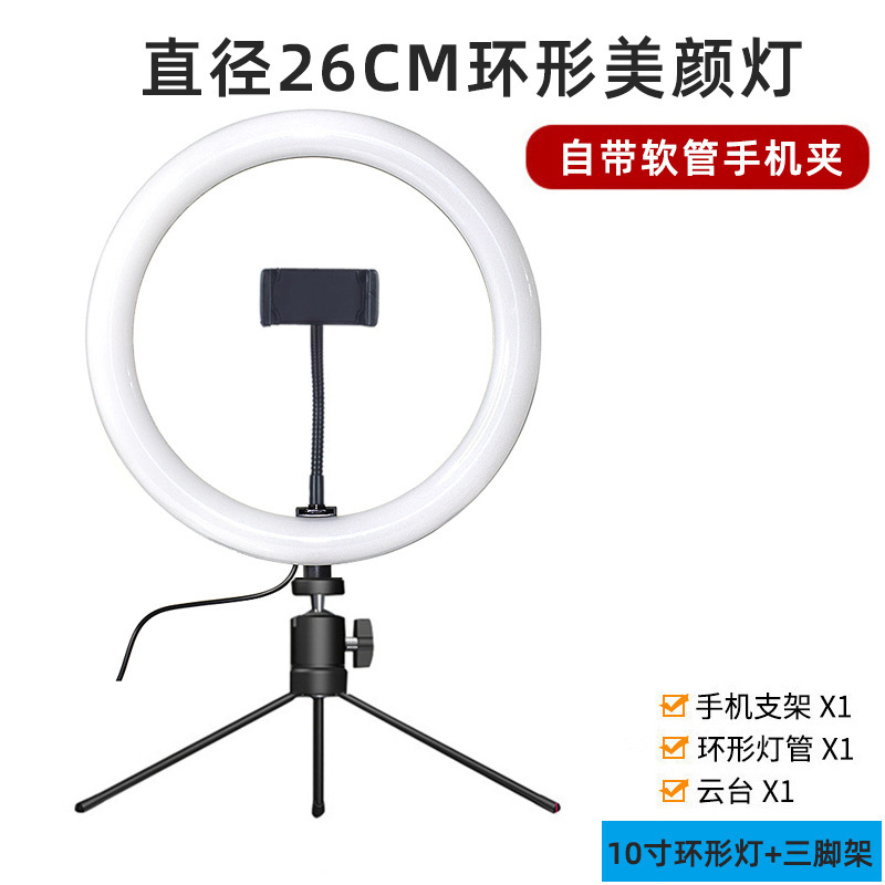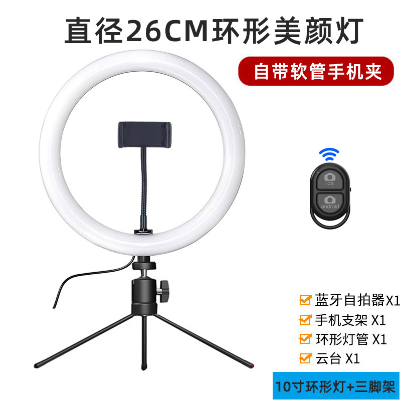 10 인치 링 필 라이트 라이브 비디오 카메라 휴대 전화 데스크탑 금속 삼각대 26cm 셀프 타이머 원격 제어 세트