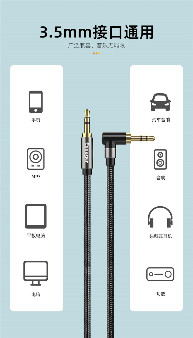 Esager 싱글 팔꿈치 시리즈 3.5mm 남성에서 남성으로 오디오 케이블 팔꿈치 컴퓨터 스피커 헤드셋 자동차 오디오 케이블스토어 가기