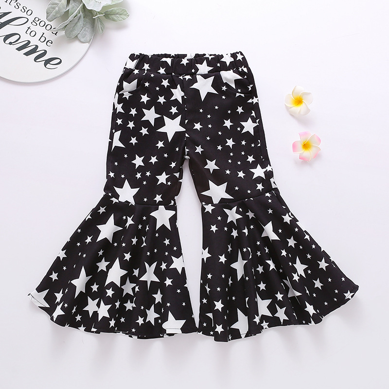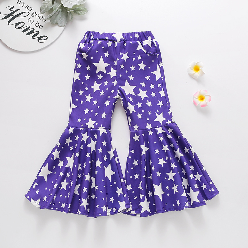 봄과 여름 2021 여아 다섯개 별 바지 크로스 보더 유럽과 미국 팬 어린이 벨 바지 스타 프린트 어린이 바지스토어 가기
