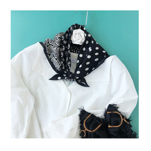 新款桑蚕丝围巾姚晨同款丝巾黑白波点圆点chic风丝巾女小方巾领巾