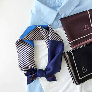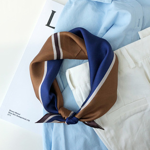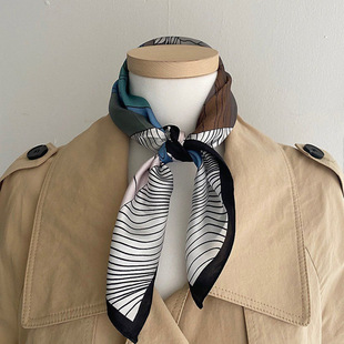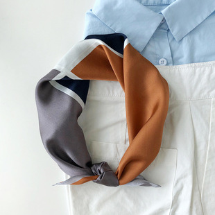 秋季丝巾chic风小丝巾真丝丝巾韩国复古拼色几何桑蚕丝小方巾女士