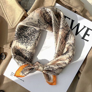 春秋新款真丝丝巾女100桑蚕丝围巾温柔花卉53cm素绉缎真丝领巾女