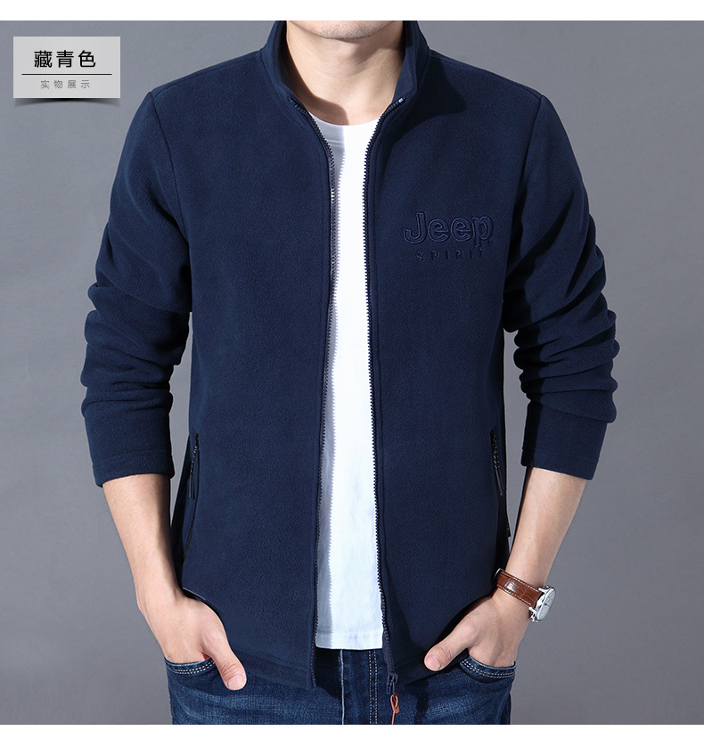 JEEPSPIRIT 가을 겨울 야외 스포츠 패션 캐주얼 스탠드 칼라 가디건 플리스 보온 스웨트셔츠 재킷 남성용 6056