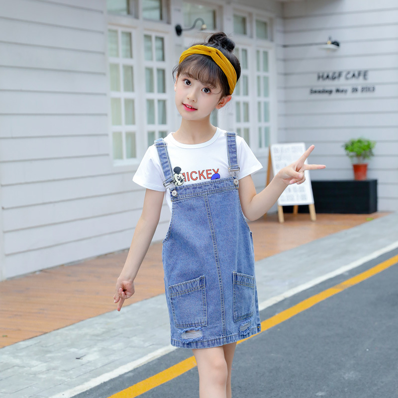 여자 데님 서스펜더 스커트 봄과 여름 새로운 스타일 서스펜더 드레스 데님 스커트 서양식 인터넷 연예인 베이비 롱 스커트 Gaun스토어 가기