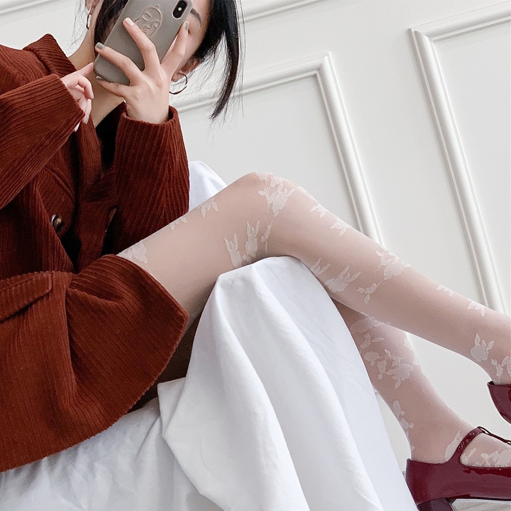 21 봄과 여름 새로운 in 빈티지 크림 화이트 스판덱스 로즈 자카드 팬티 스타킹 울트라 씬 살점 다크 블랙 스타일 팬티 스타킹