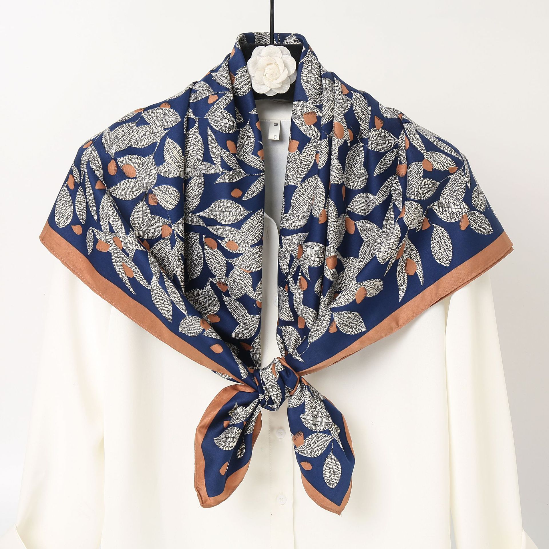 Gaohe 간단한 식물 잎 인쇄 스카프 우아한 사교계 그물 빨간 봉투 스카프 90cm 큰 사각형 스카프 대외 무역스토어 가기