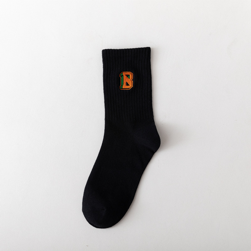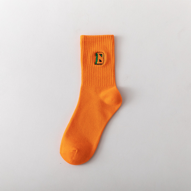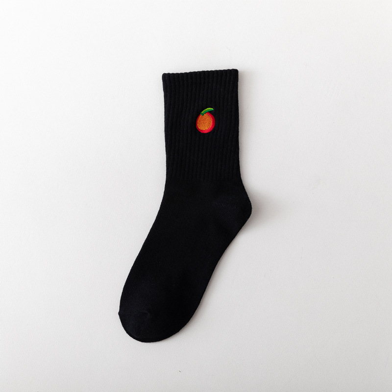 【产品名称】 四色刺绣黑橘袜 潮袜
