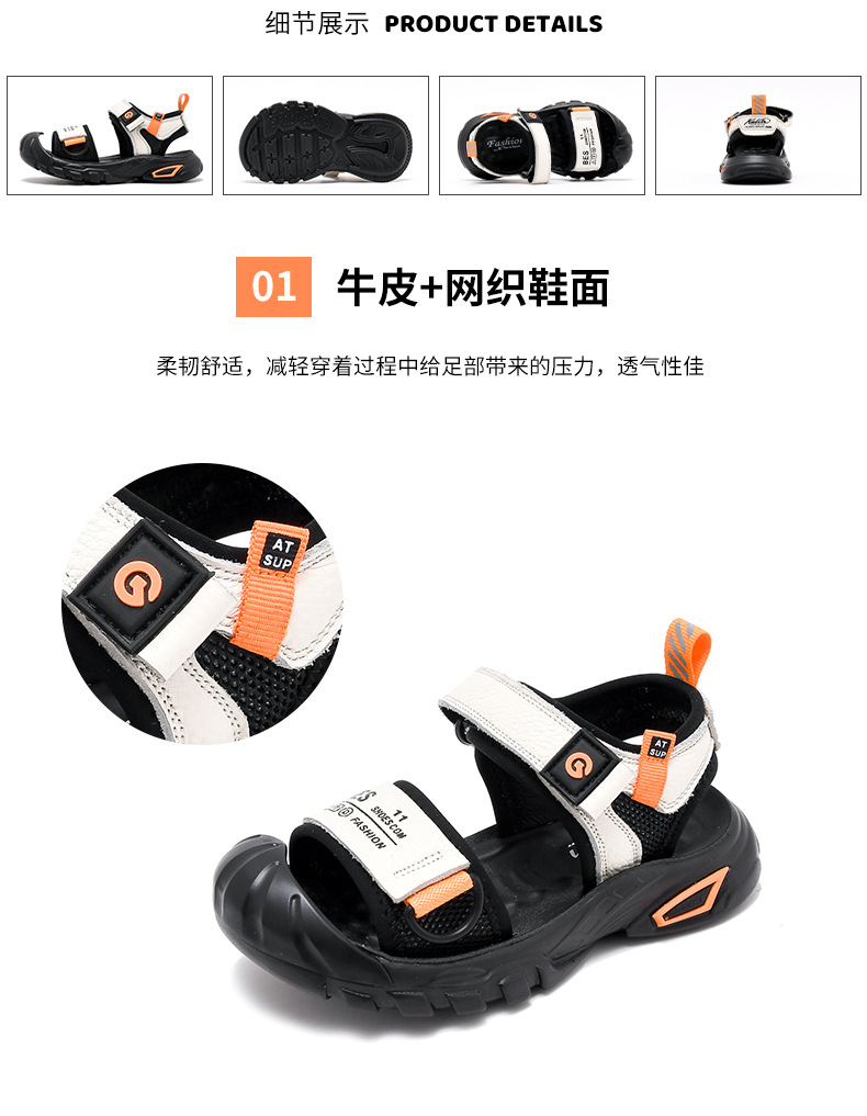 소년 샌들 2023 여름 새 어린이 벨크로 스포츠 초등학생을위한 부드러운 바닥 발가락 샌들스토어 가기