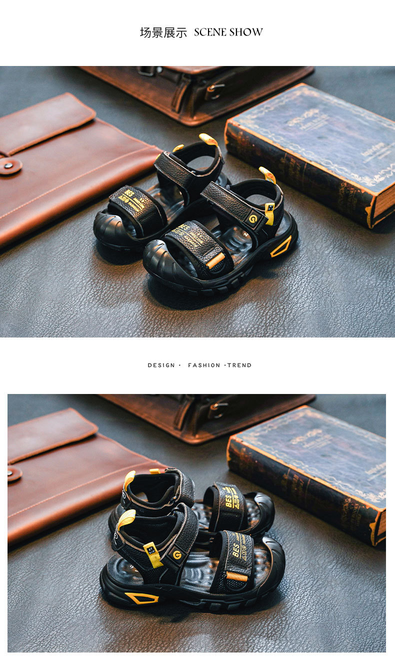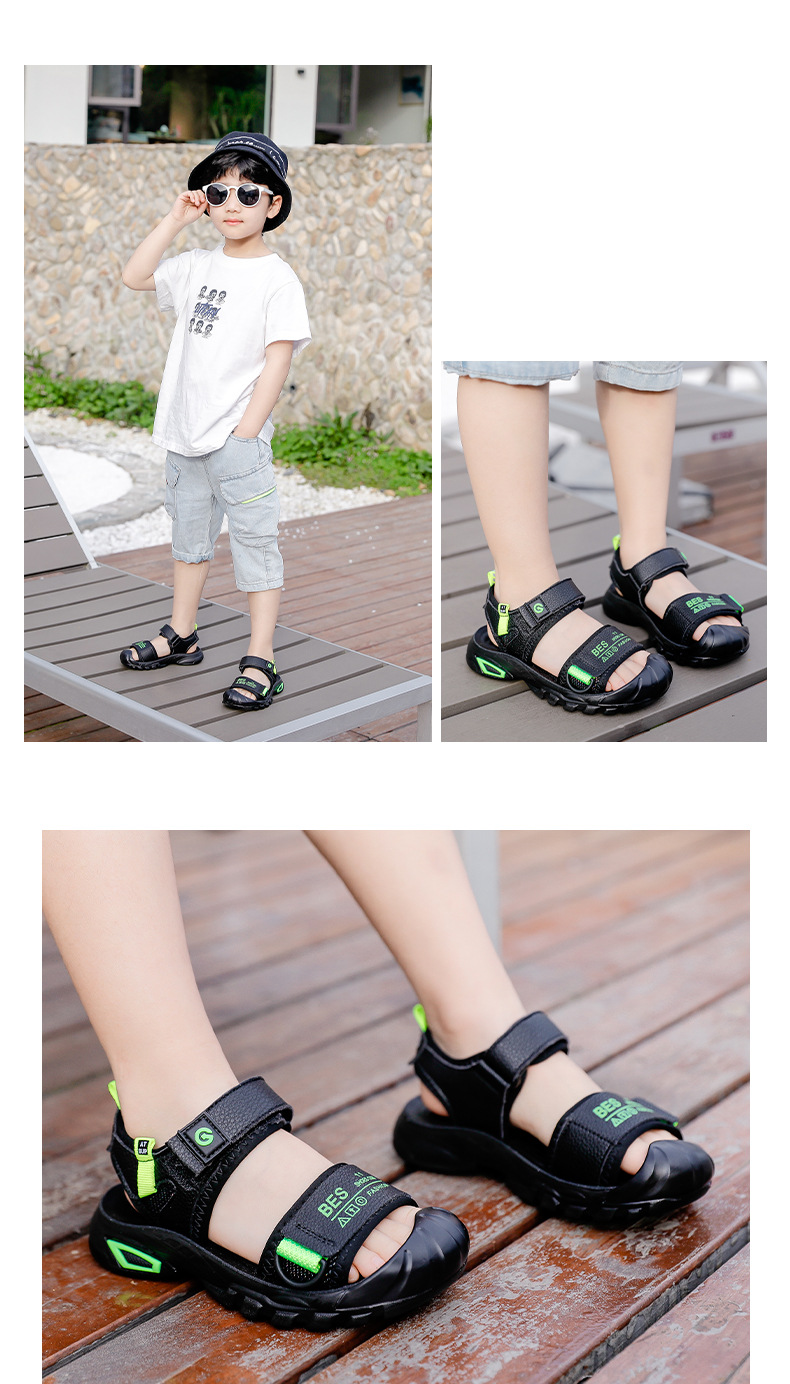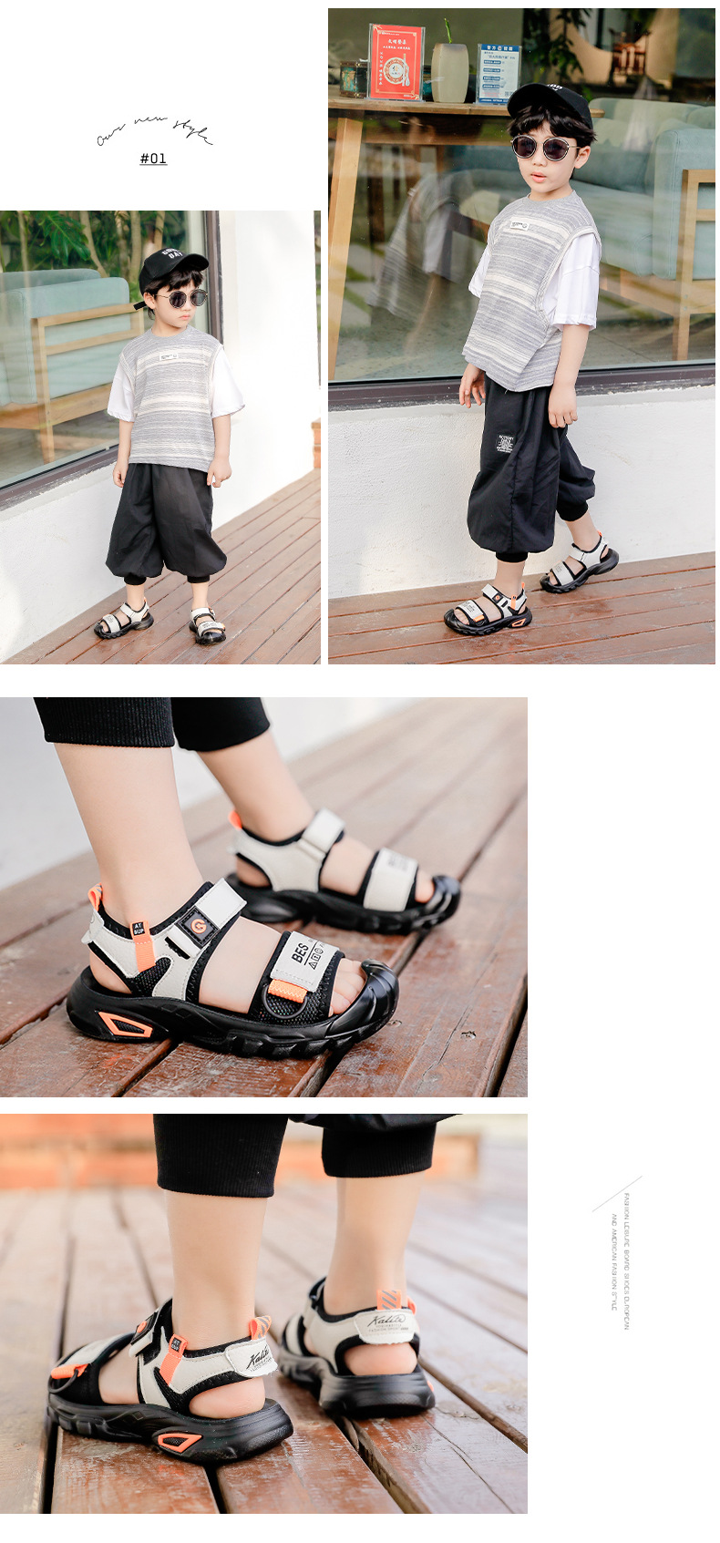 소년 샌들 2023 여름 새 어린이 벨크로 스포츠 초등학생을위한 부드러운 바닥 발가락 샌들