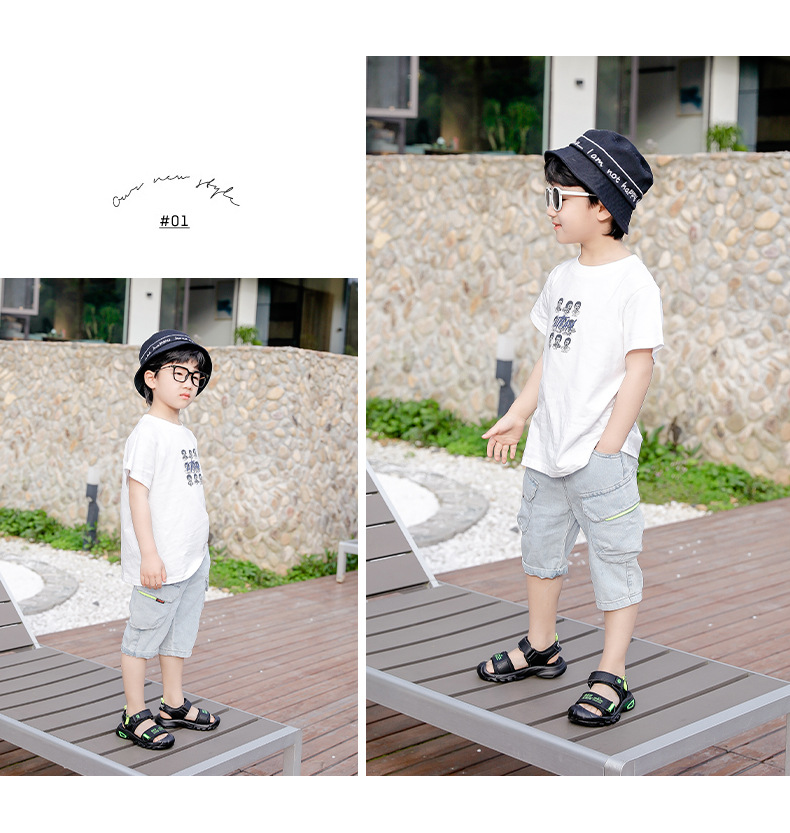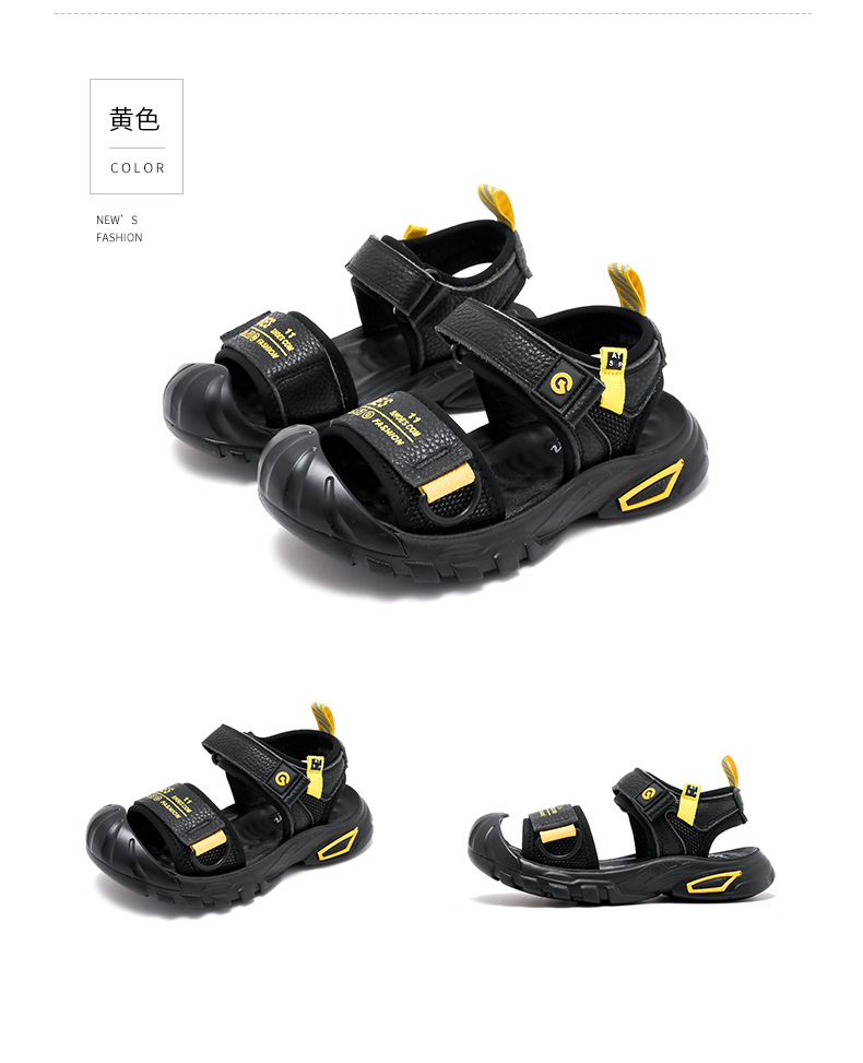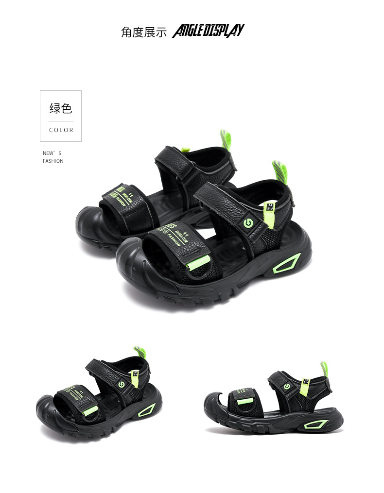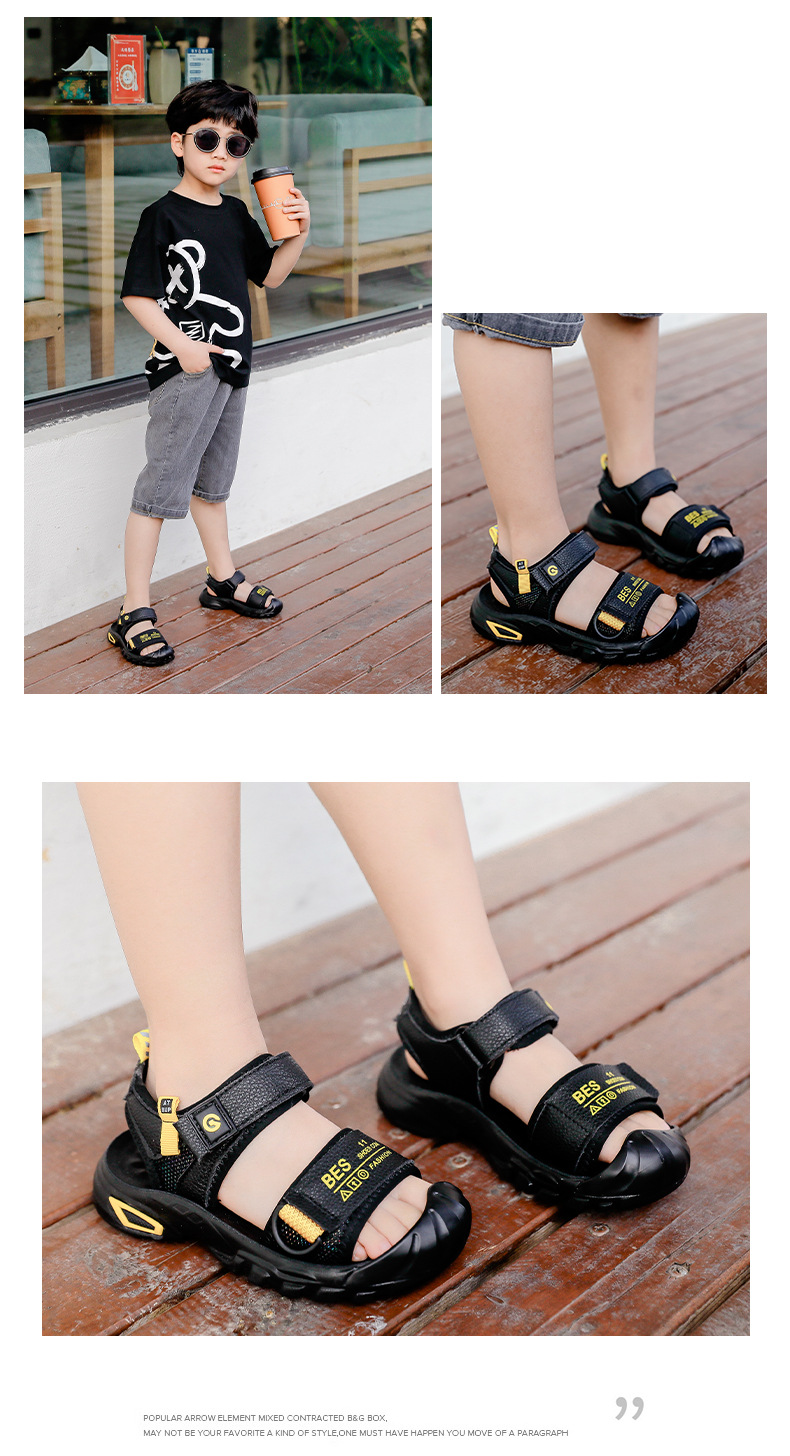 소년 샌들 2023 여름 새 어린이 벨크로 스포츠 초등학생을위한 부드러운 바닥 발가락 샌들