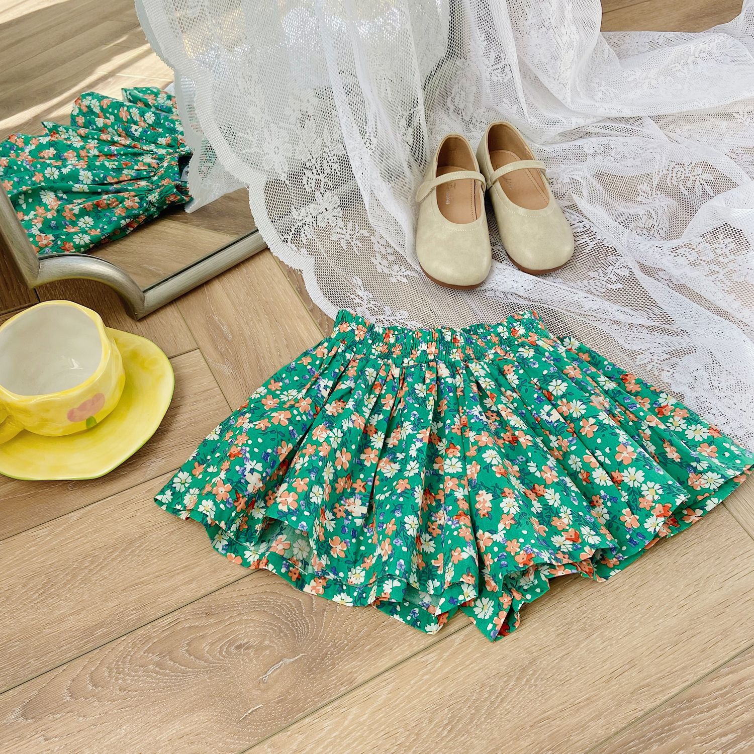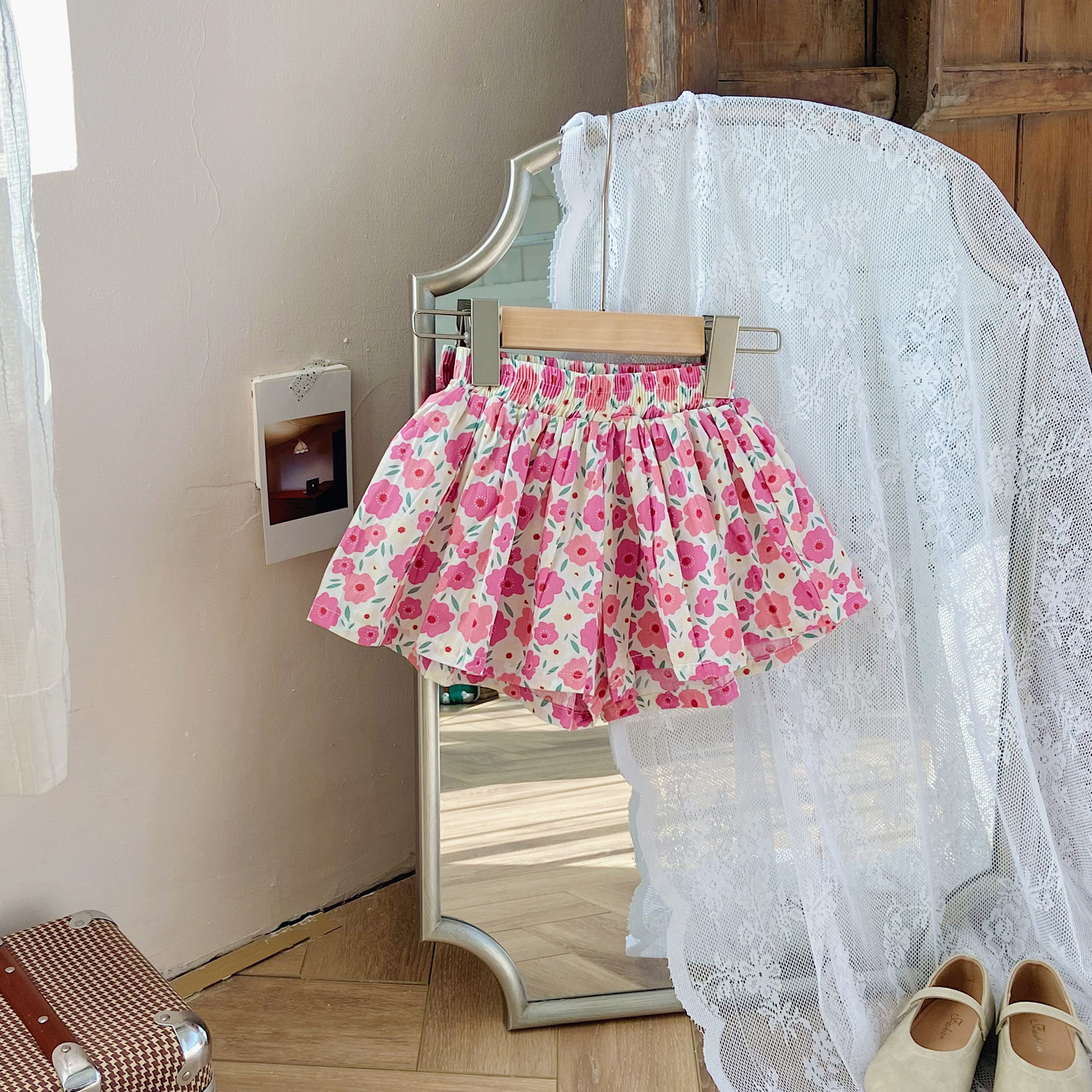 한국 아동 꽃무늬 반바지 2025 여름 스타일 베이비 스타일 꽃무늬 스커트 패셔너블하고 다재다능한 여아 와이드 레그 핫팬츠