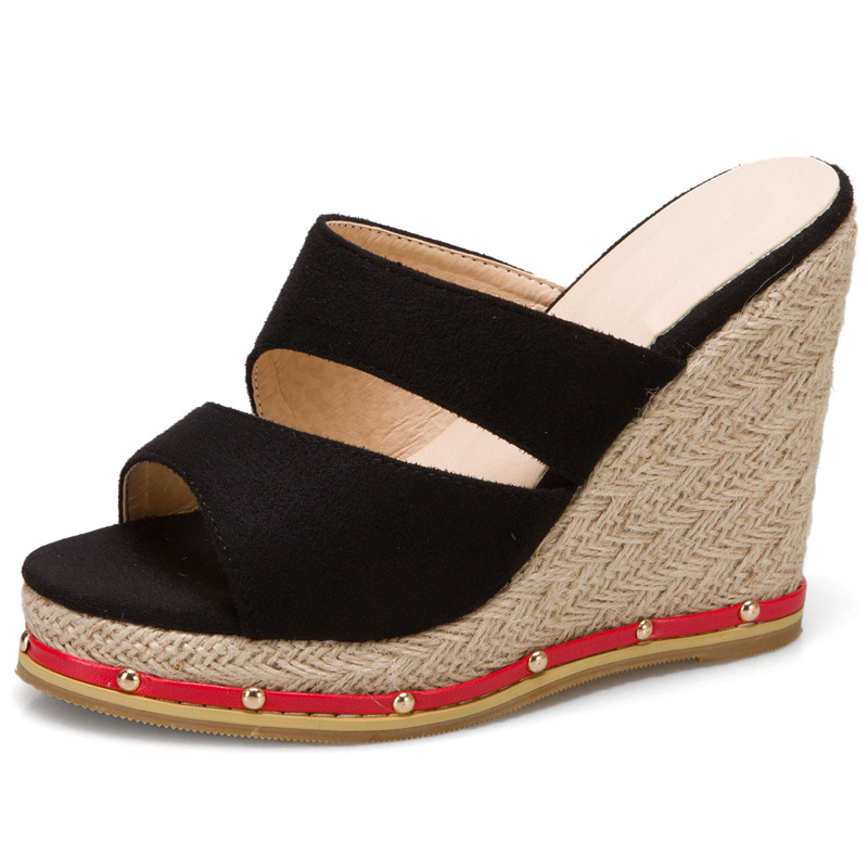 40-48 플러스 사이즈 슬리퍼 여성용 두꺼운 바닥 웨지 샌들 새로운 여성 신발 하이힐 슬리퍼 대외 무역 신발스토어 가기