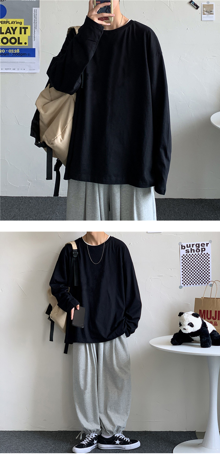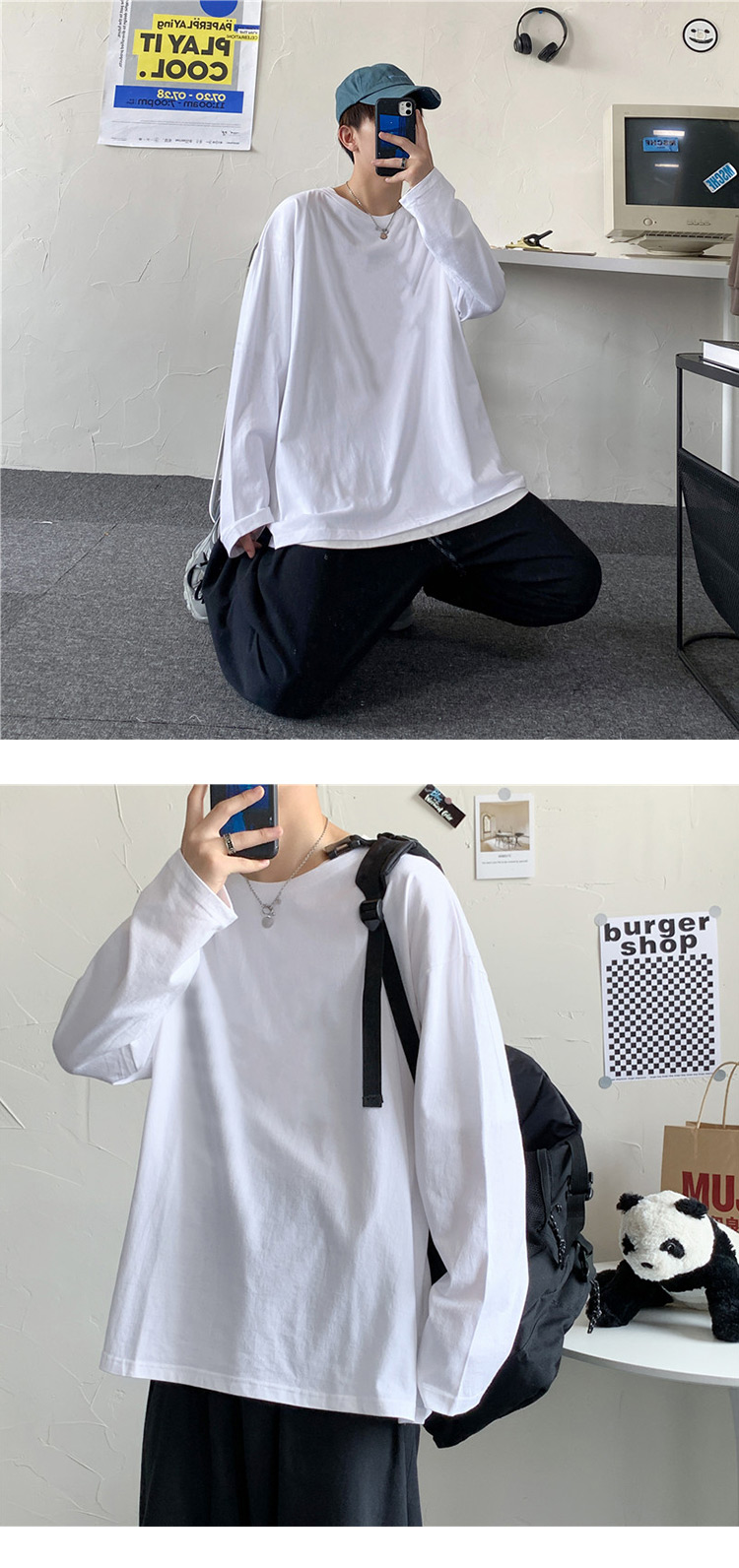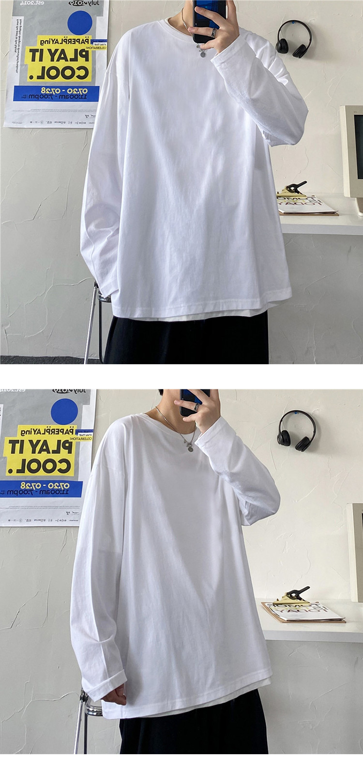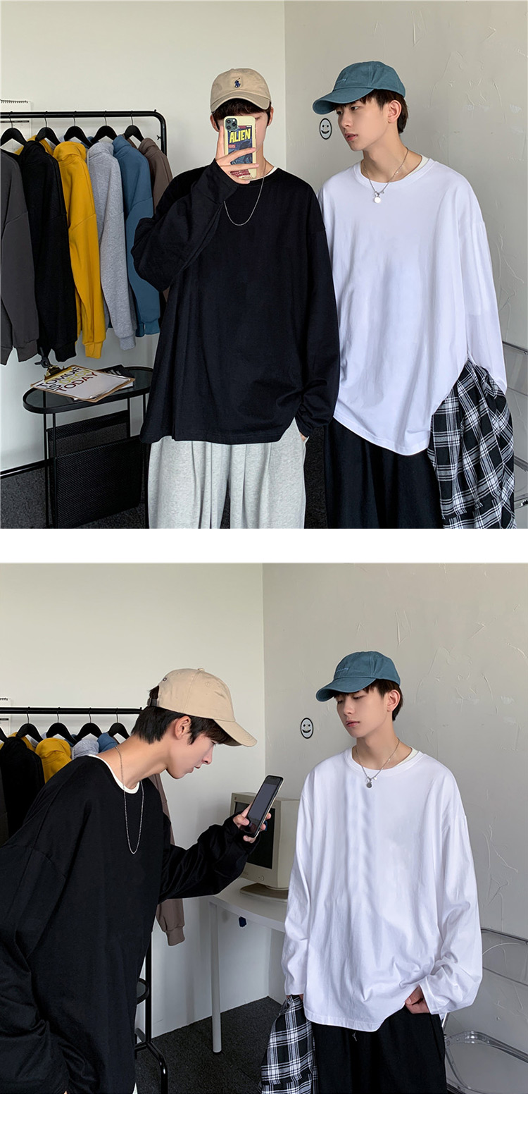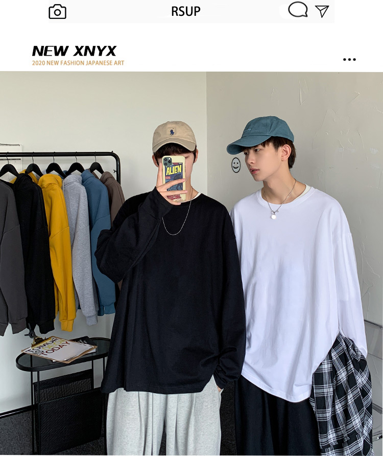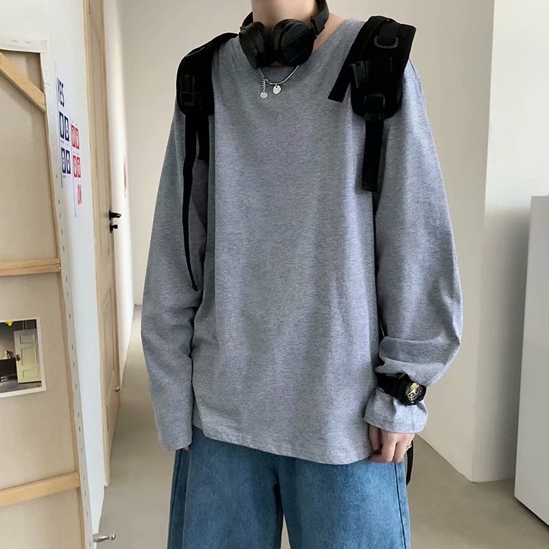 단색 긴팔 티셔츠 남성용 트렌디 브랜드 가을 한국 스타일 루즈핏 다용도 인스타그램 커플 스타일 베이스 셔츠 인스타그램 스타일스토어 가기
