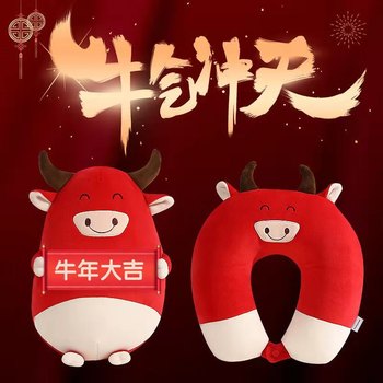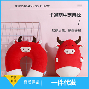 厂家直销毛绒玩具小牛公仔可变形U型枕颈枕牛年吉祥物玩偶可定制