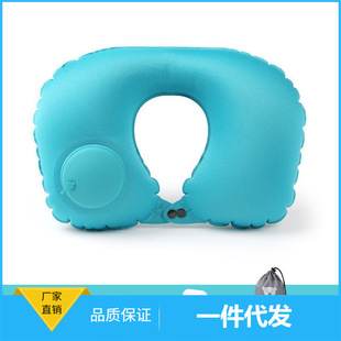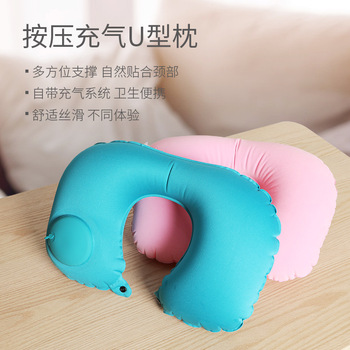 植绒充气U型枕牛奶丝TPU按压自动充气枕头便携随身旅行枕