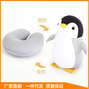 厂家直销儿童企鹅变形u型枕头粒子卡通护颈枕多功能两用枕旅行枕