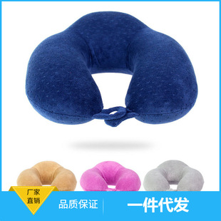 新款欧美素色提花天鹅绒U型枕慢回弹记忆枕护脖颈枕厂家批发