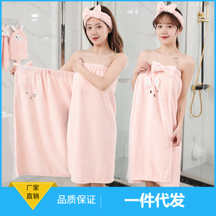 新款超柔纤维浴巾浴帽发带6件套超吸水洗浴套装卡通可爱女孩礼物