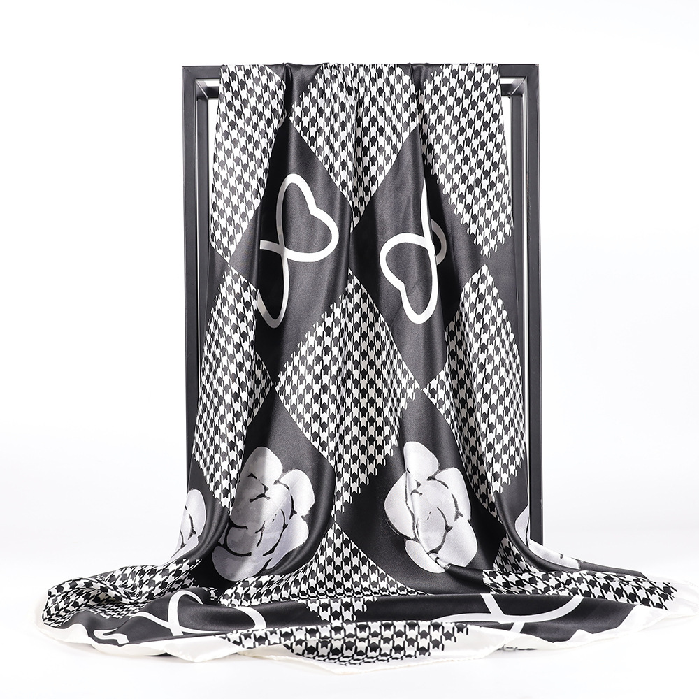 새로운 작은 향기로운 바람 인쇄 스카프 여성 90*90cm 새틴 새틴 큰 사각형 크로스 보더 공급 머리카락 세대스토어 가기