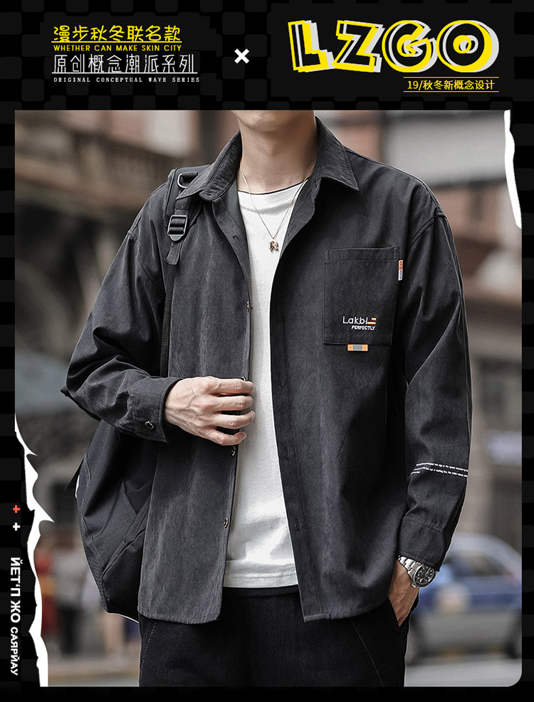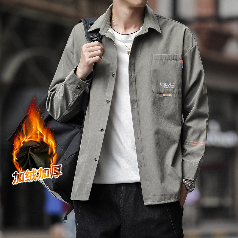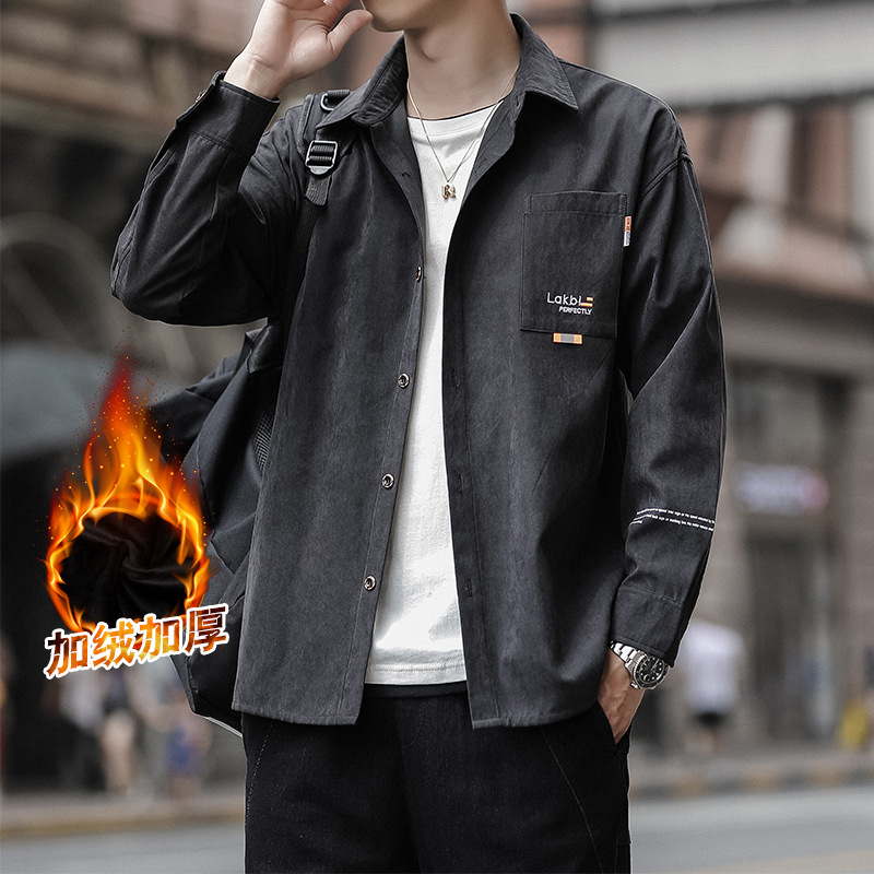 셔츠 재킷 남자의 긴 소매 봄과 가을 한국 유행 셔츠 홍콩 스타일 일본 스타일 최고 캐주얼 남자의 겨울 기모스토어 가기