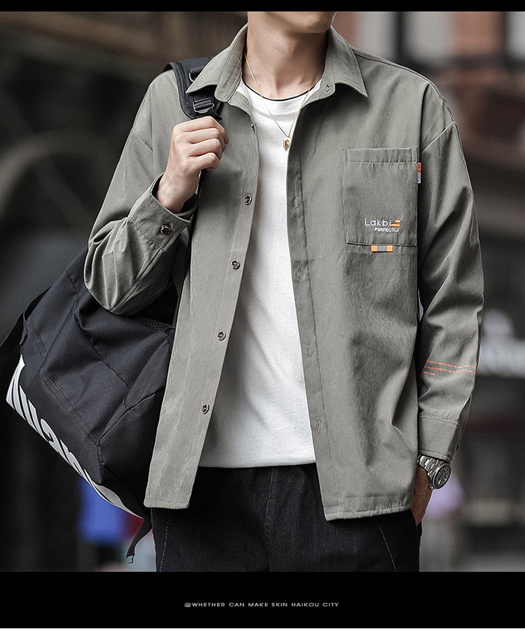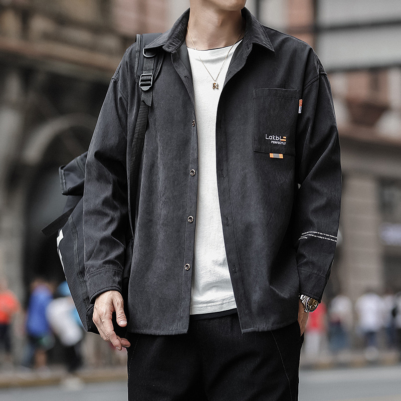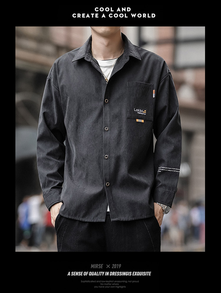 셔츠 재킷 남자의 긴 소매 봄과 가을 한국 유행 셔츠 홍콩 스타일 일본 스타일 최고 캐주얼 남자의 겨울 기모