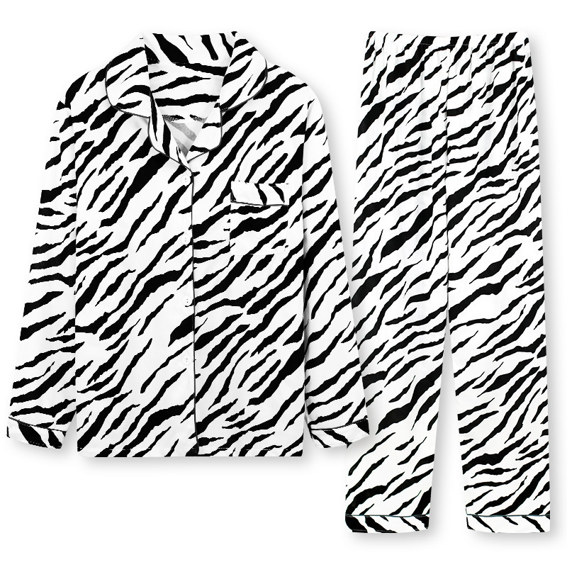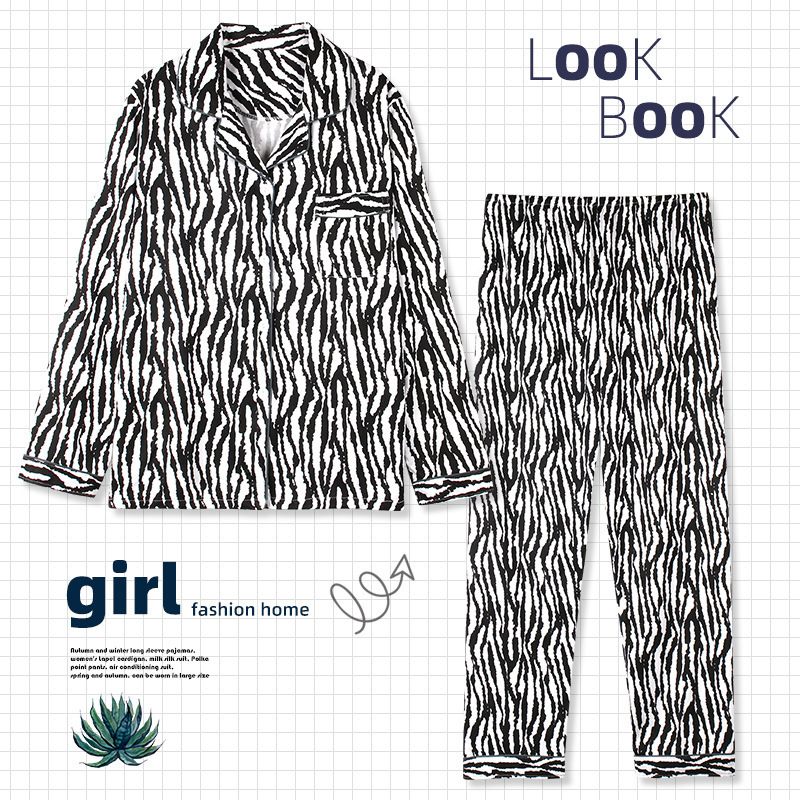 크로스 국경 봄과 가을 긴 소매 바지 잠옷 여자의 옷깃 카디건 스트라이프 세트 아웃웨어 플러스 사이즈 대외 무역 가정 옷스토어 가기