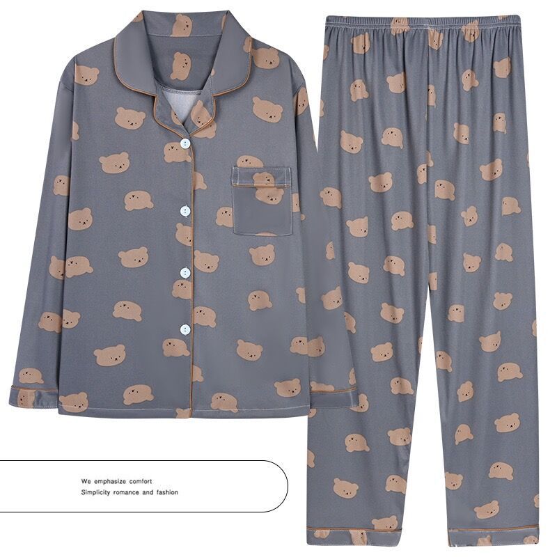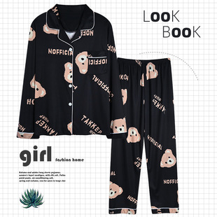 2023插色领小熊初春秋新款网红ins小熊可爱日系长袖睡衣女 家居服