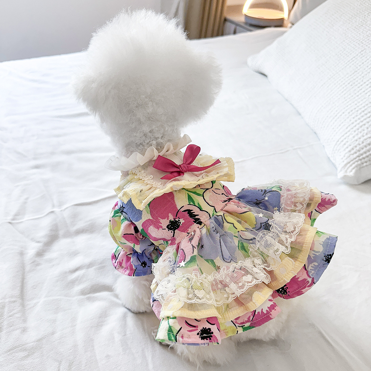 애완동물 옷 테디 비숑 의상 고급 메이드 플로럴 드레스 컬렉션 공주 레이스 강아지 옷
