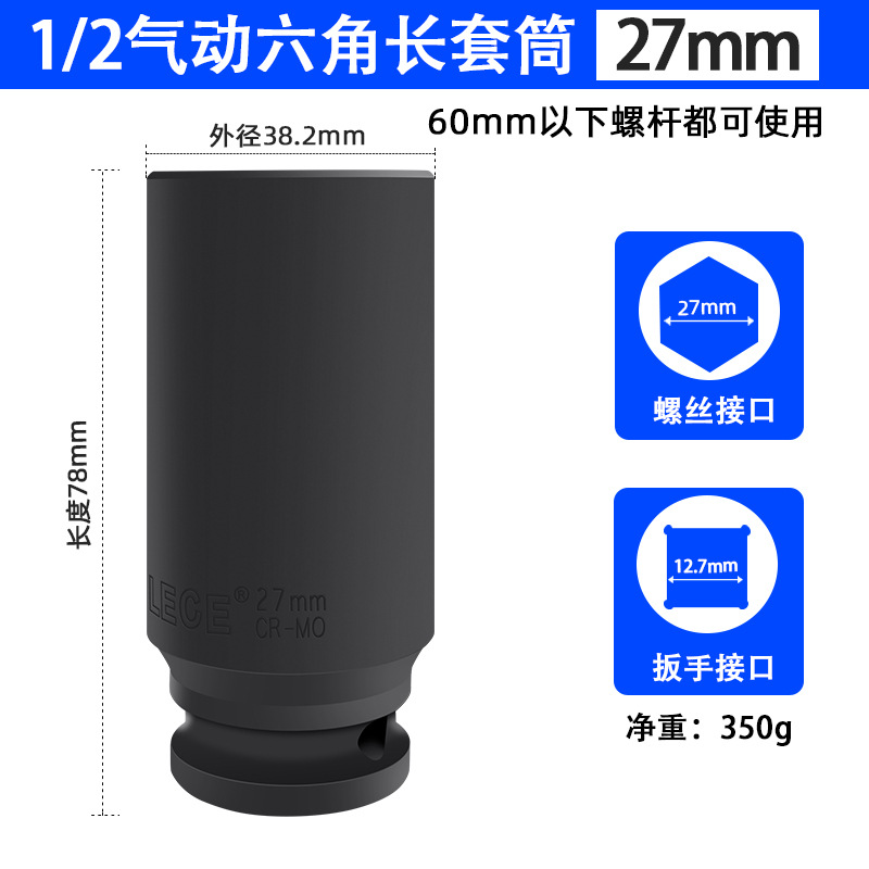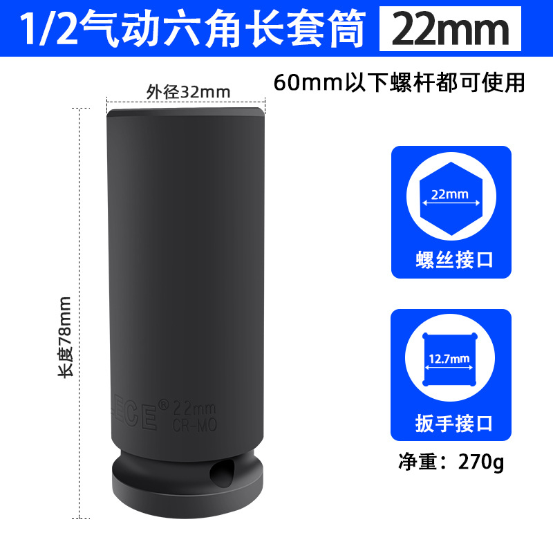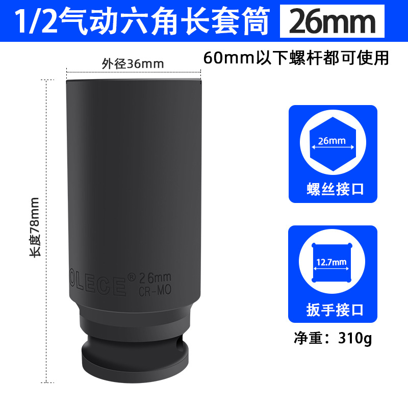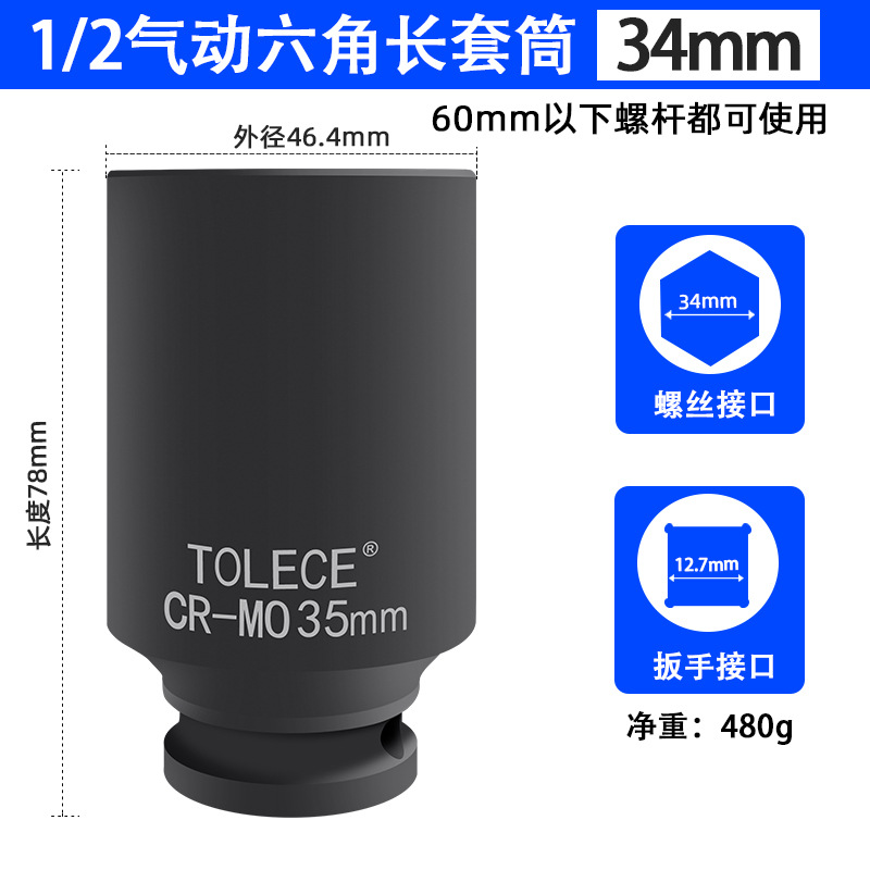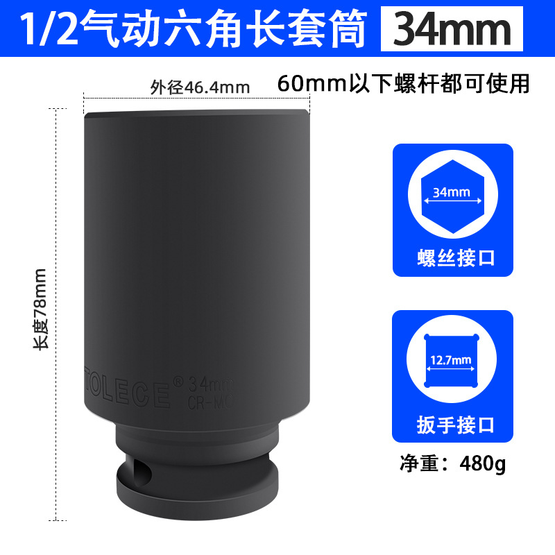 투오 리오 1/2 공압 연장 육각 소켓 전기 렌치 소켓 헤드 윈드 건 두꺼운 특수 소켓스토어 가기