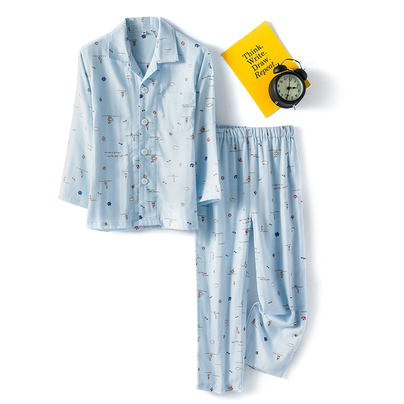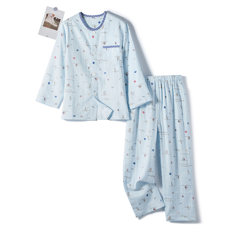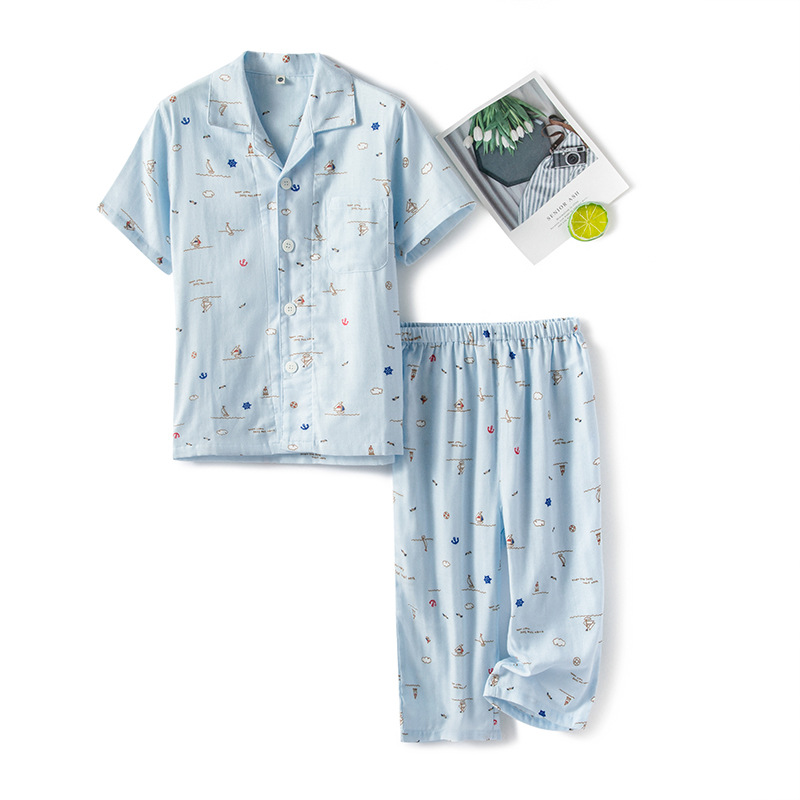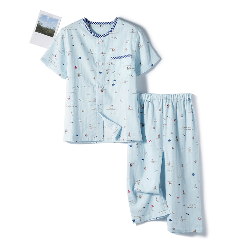 순면 더블 레이어 원사 소년 바다 바람 긴 소매 바지 반팔 7 바지 잠옷 세트 가정 옷 머리카락의 세대스토어 가기