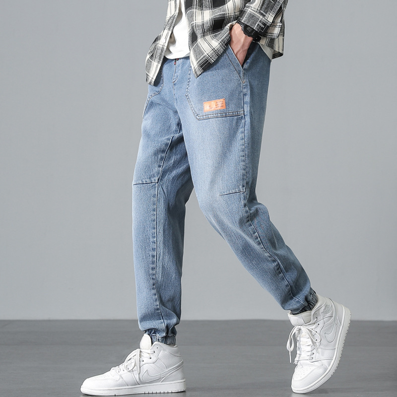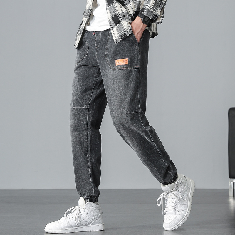 트렌디 한 브랜드 청바지 남성 가을과 겨울 새로운 한국 스타일 트렌디 슬림 핏 바지 느슨한 스트레이트 남성 캐주얼 바지스토어 가기