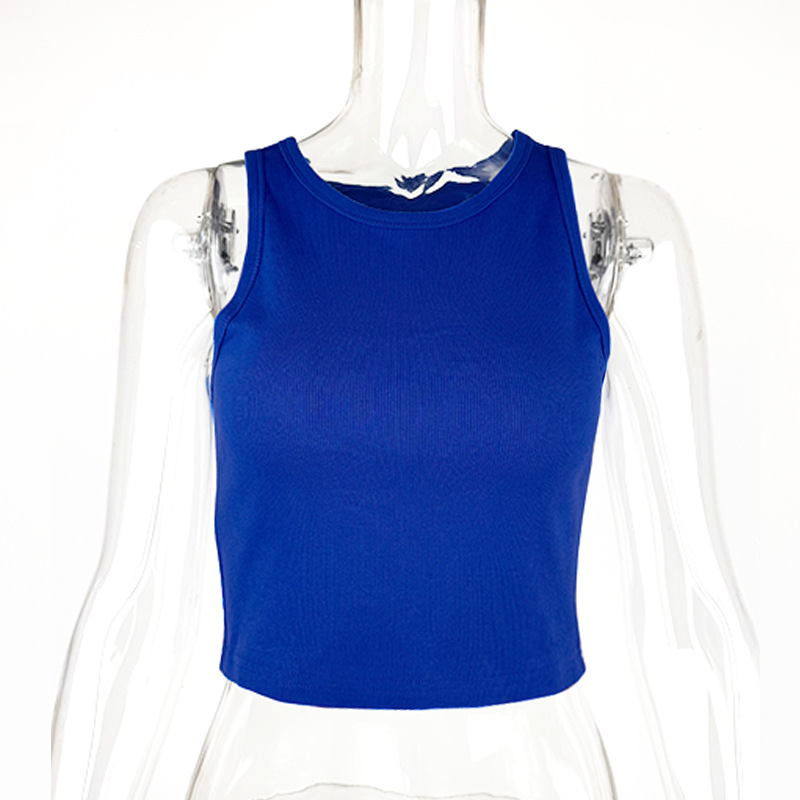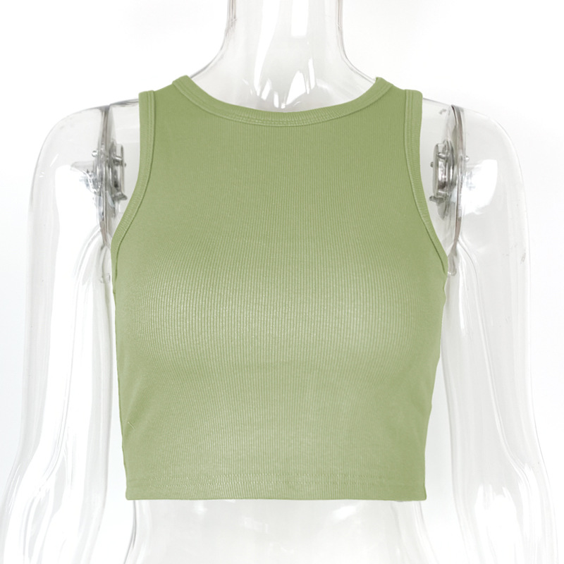 유럽과 미국의 ins 스포츠 짧은 배꼽 노출 민소매 탑 여성 2025 여름 국경 새로운 꽉 I 자형 조끼