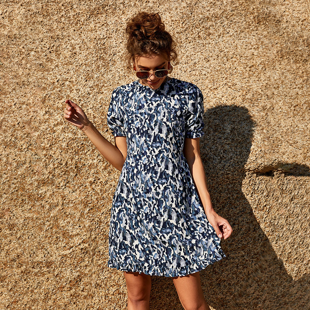 짧은 소매 라운드 넥 원피스 하이 웨이스트 인쇄 긴 소매 인쇄 우아한 통근 치마 유럽과 미국 원피스스토어 가기