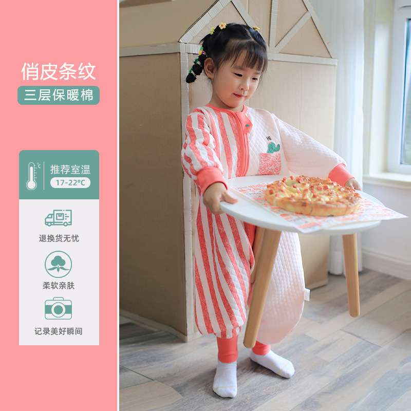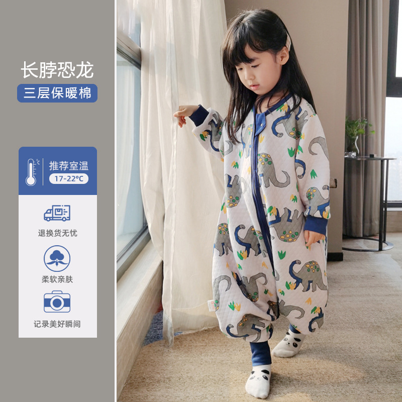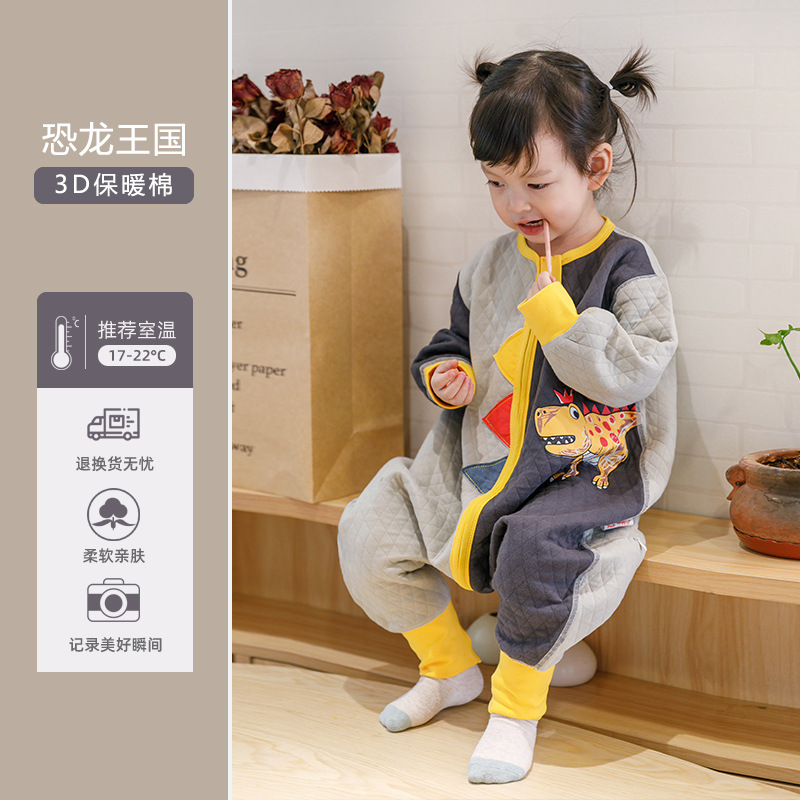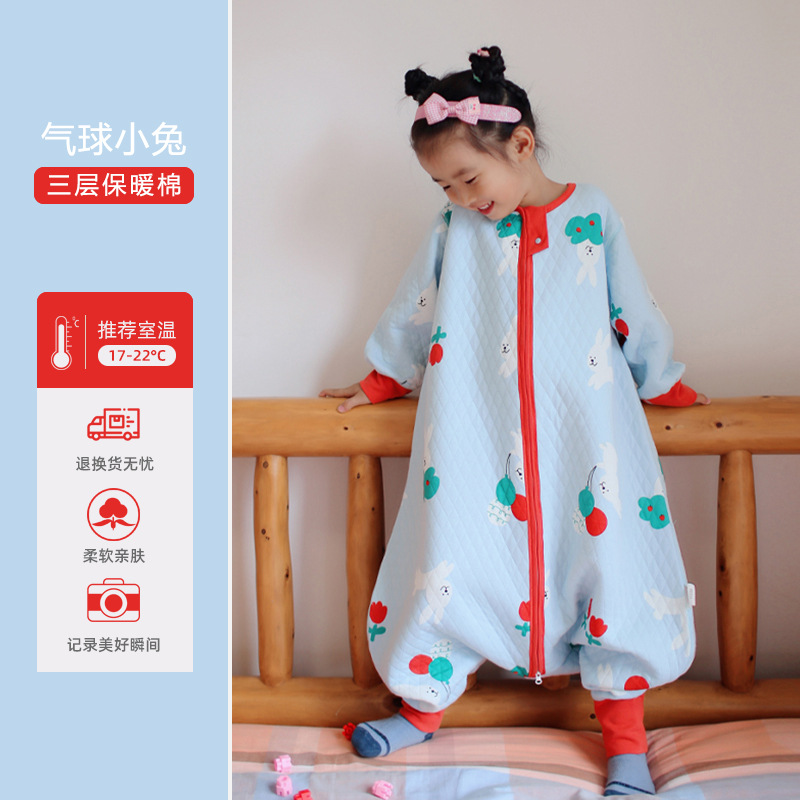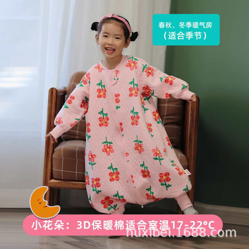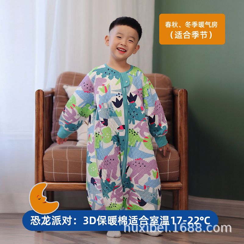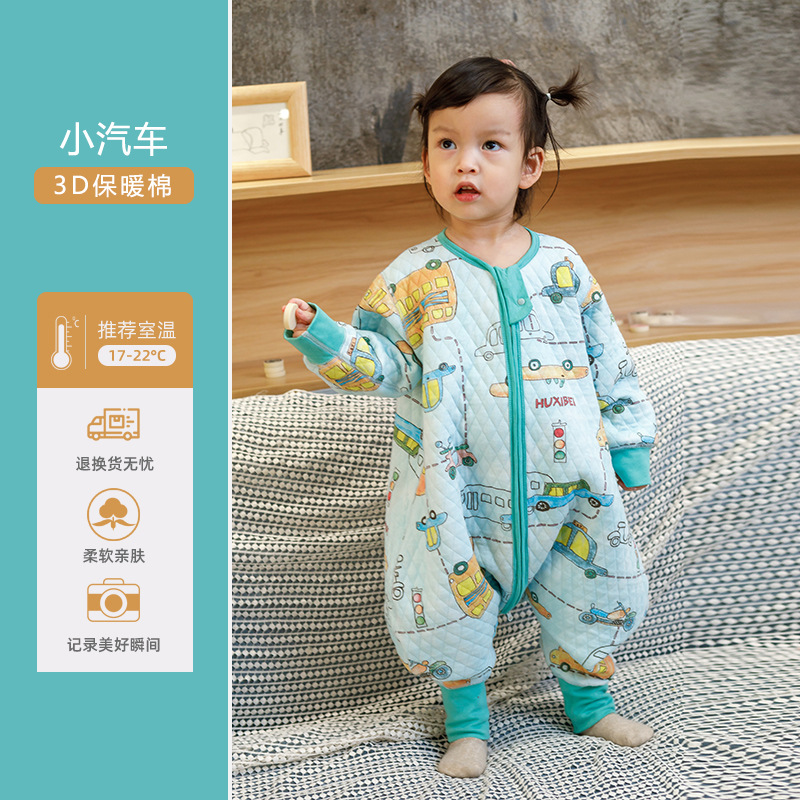 Huxibei 다리 침낭 봄과 가을 3 명 따뜻한 아이 킥 방지 아기 침낭 아기 사계절 홈 잠옷